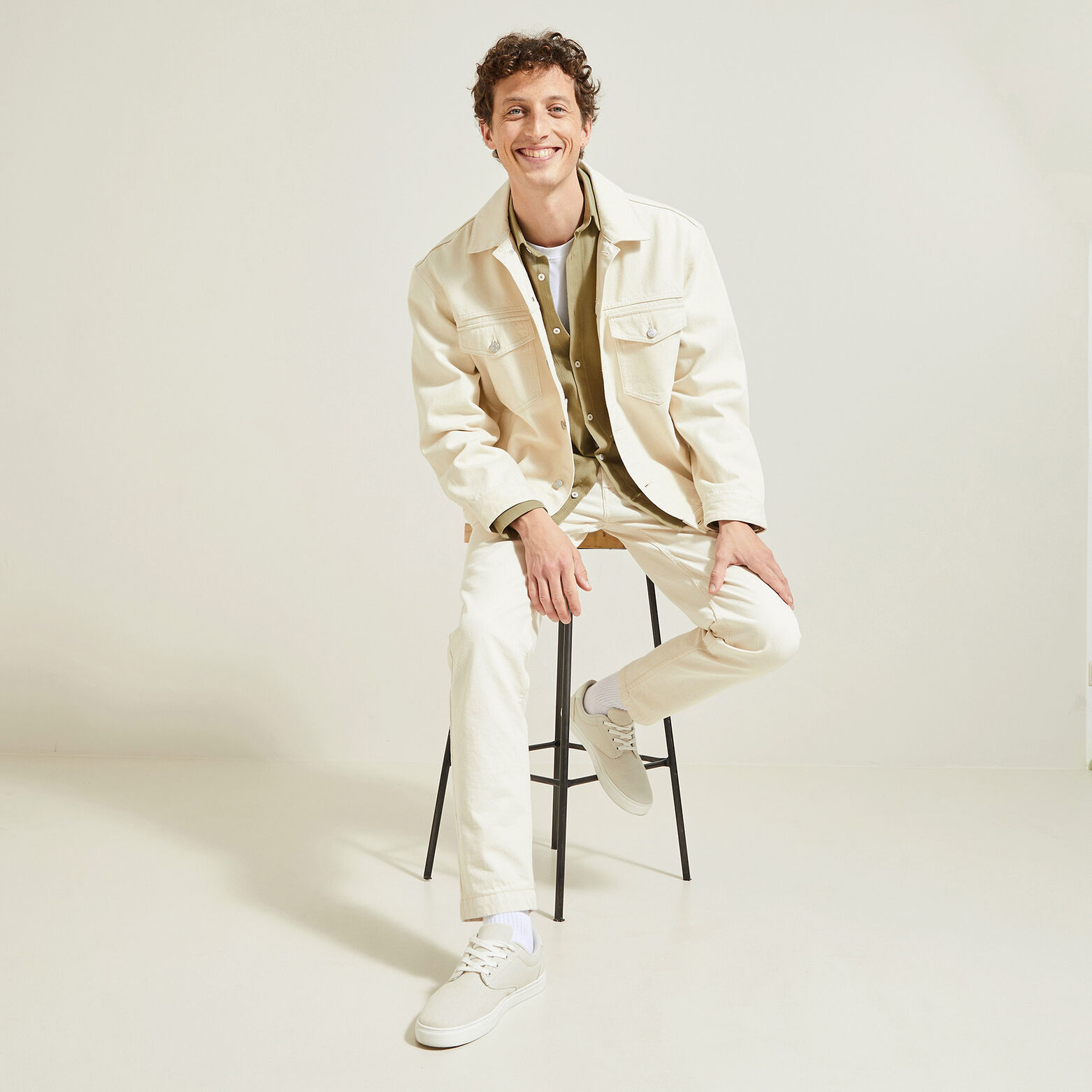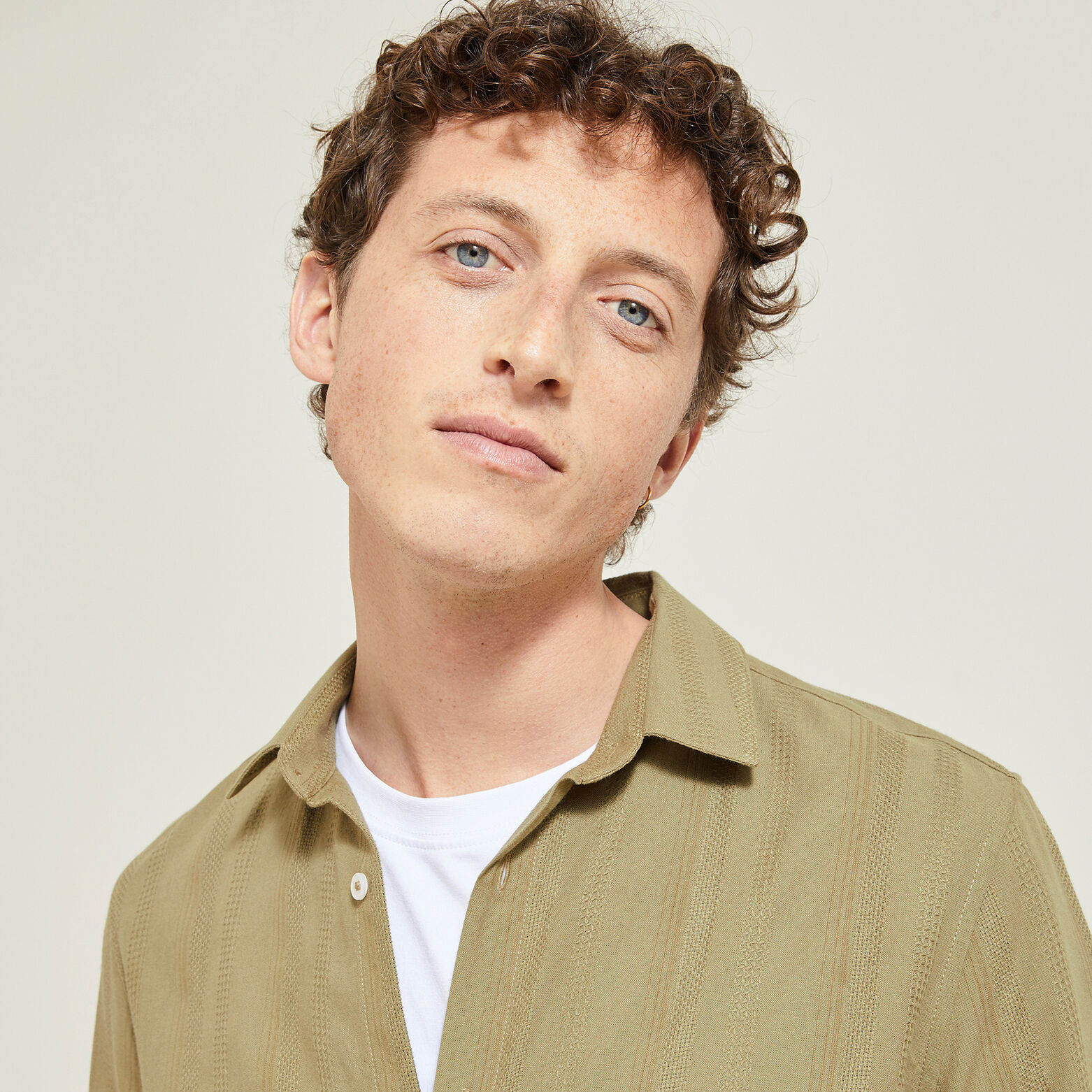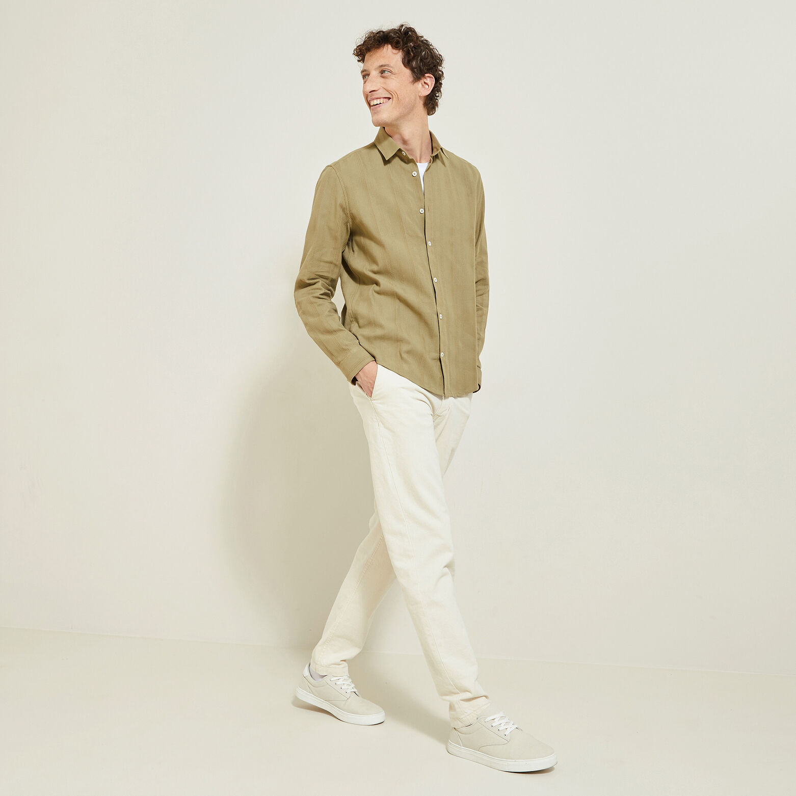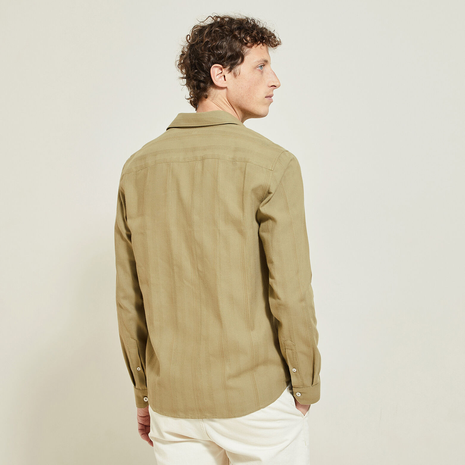 Cette chemise à manches longues, avec ses rayures en maille fantaisie ton sur ton, est une pièce tendance du vestiaire masculin. Elle peut s'accompagner d'une jean ou d'un chino.