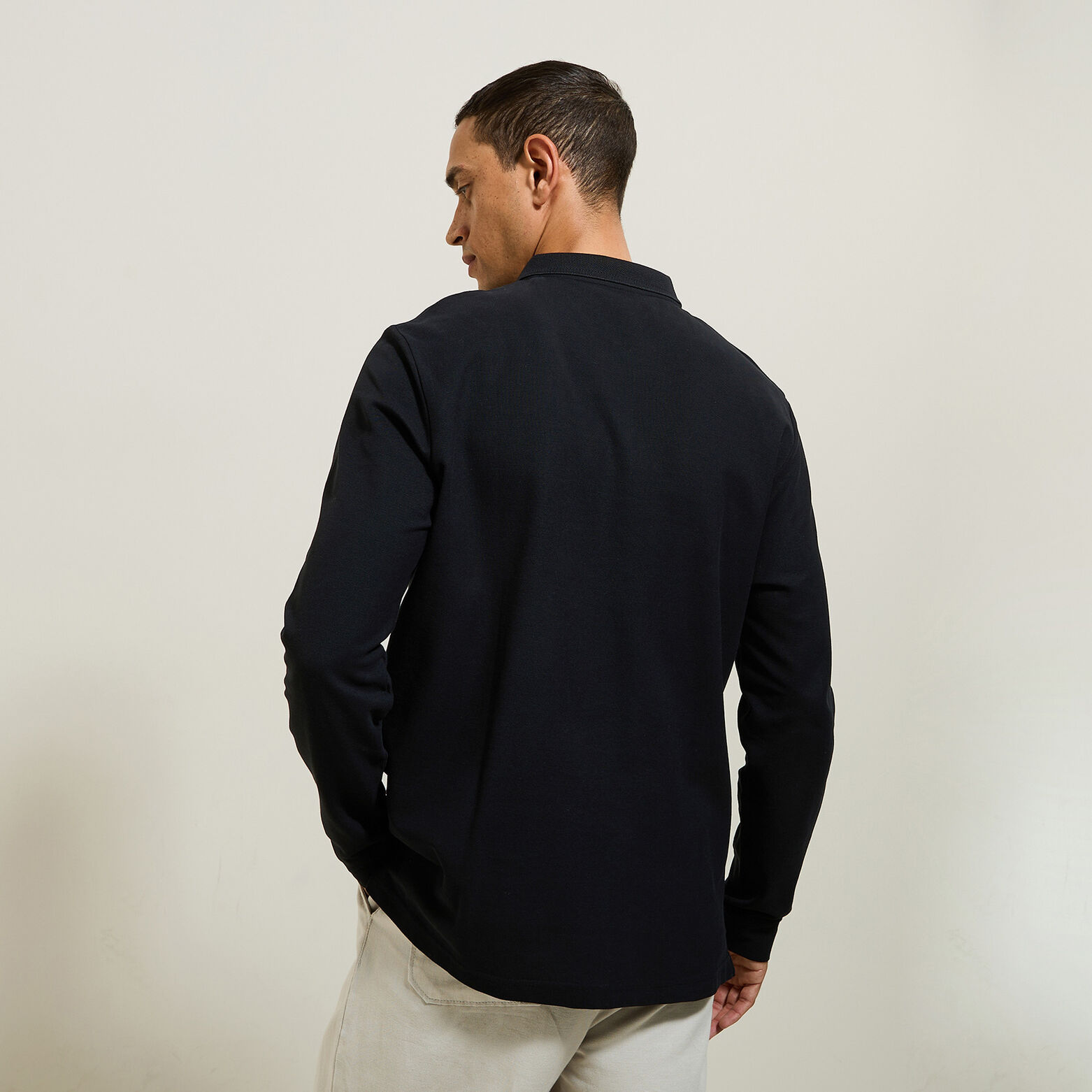 Ce polo manches longues piqué uni, avec son petit logo brodé sur la poitrine, est un indispensable du vestiaire masculin.
