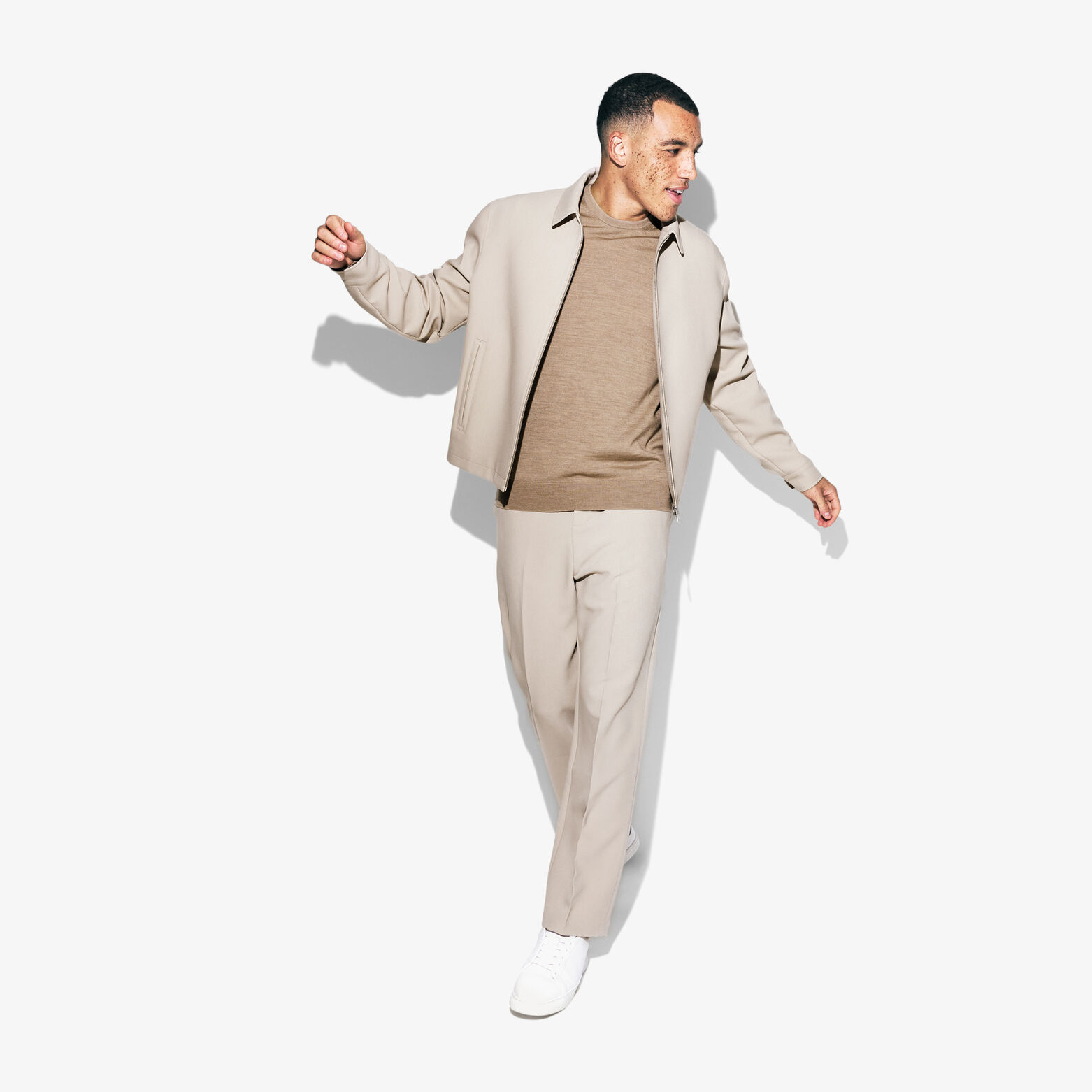 Ce pantalon habillé s'associe parfaitement avec une chemise à manches longues pour un look décontracté et élégant. Vous pouvez compléter la tenue avec une paire de baskets blanches pour un style moderne et tendance.