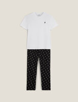 Ce pyjama est composé d'un t-shirt à manches courtes et d'un pantalon en tissu. L'ensemble est confortable en toutes circonstances.