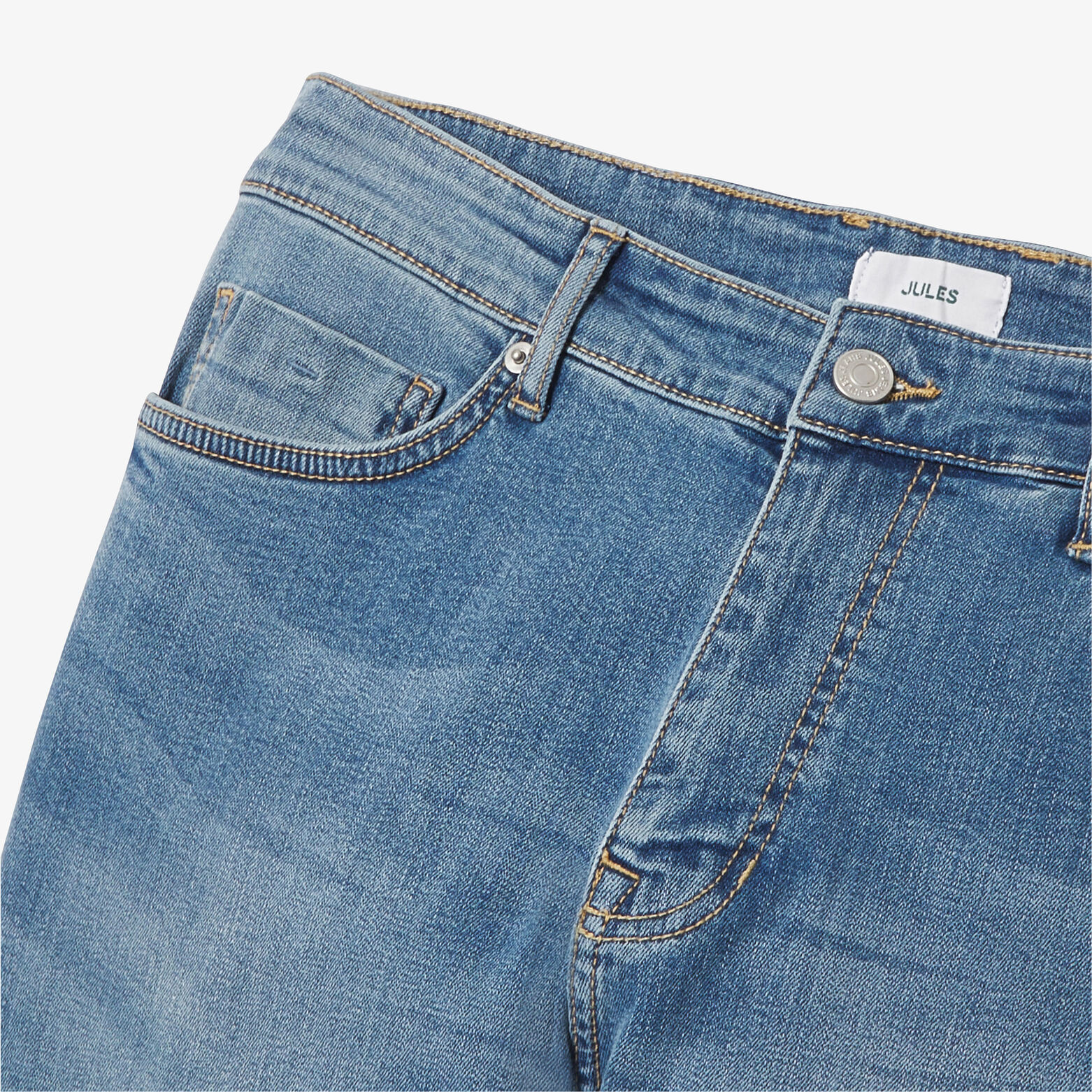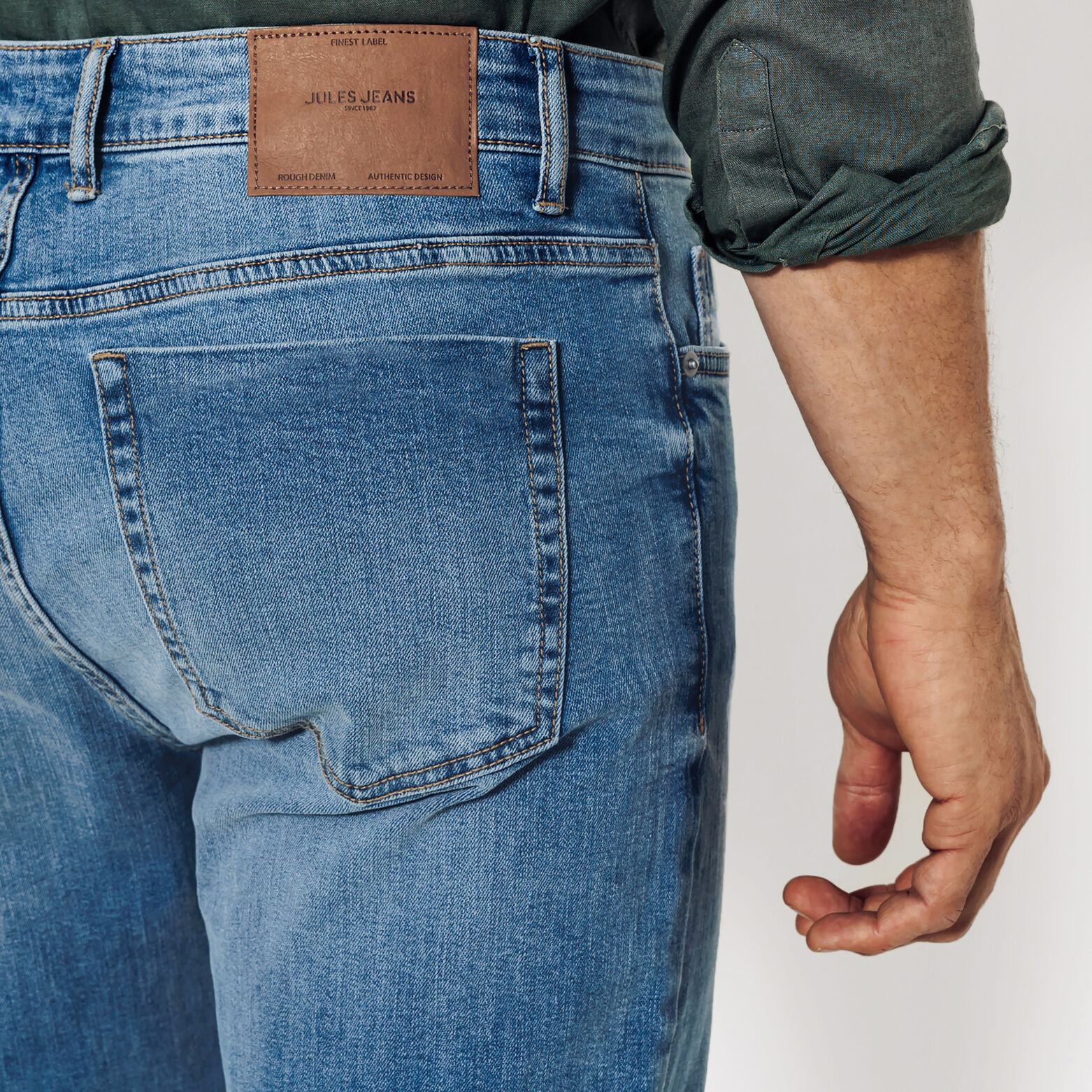Ce jean, associé à une veste beige, crée un look casual-chic idéal pour le week-end ou les sorties entre amis.