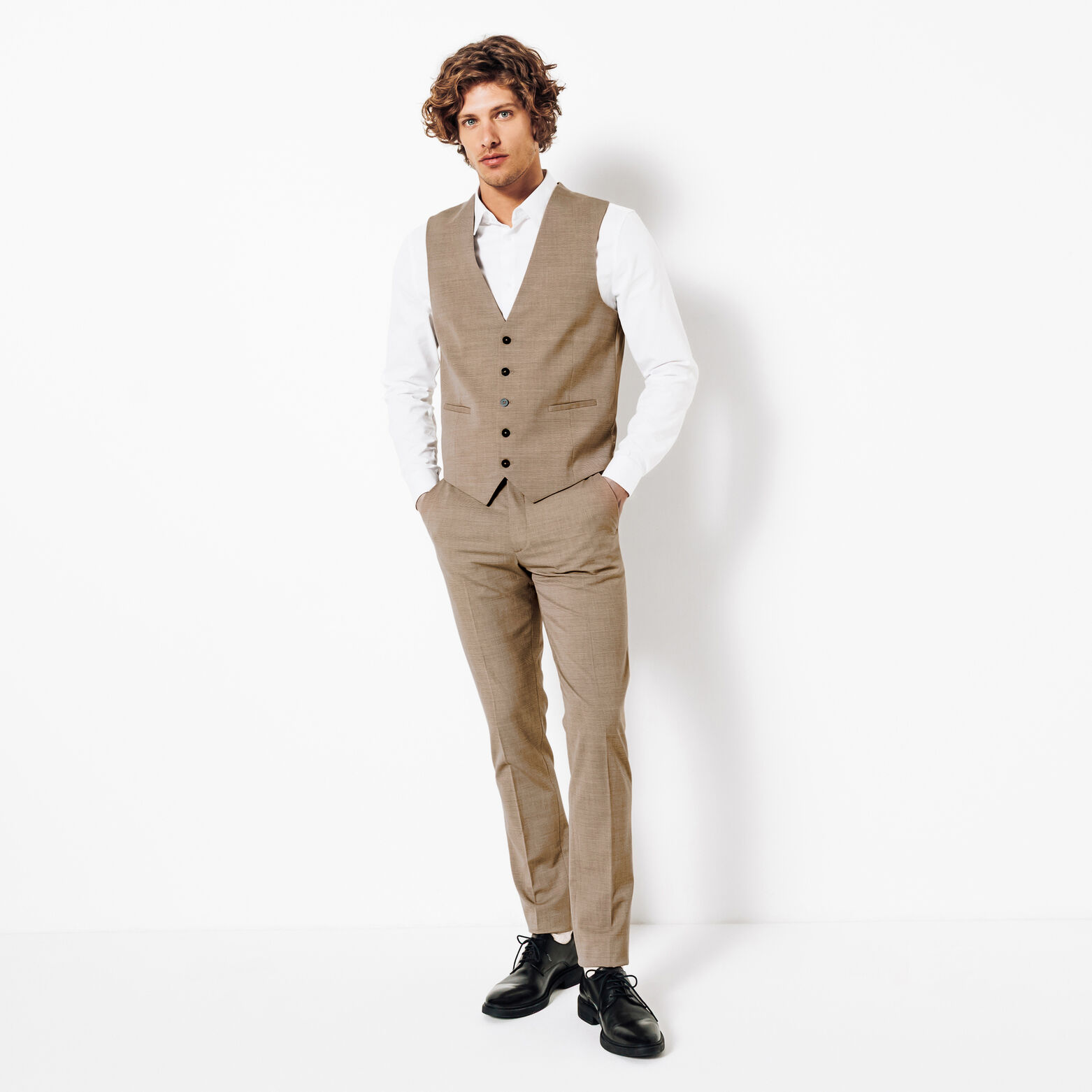 Les modèles disponibles se déclinent unis ou imprimés, et dans différentes matières,. Le gilet de costume homme est la pièce incontournable du vestiaire masculin pour ce qui est de se confectionner un look élégant, parfait avec un pantalon de costume homme et une veste. C'est la touche finale de grand standing pour un costume trois pièces,, summum de la tenue élégante dans le prêt-à-porter masculin.