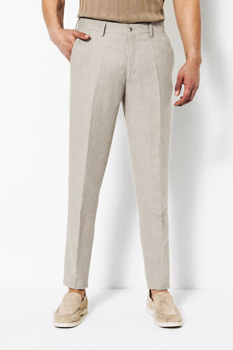 Ce pantalon de costume contenant du lin possède des plis marqués pour une allure élégante et décontractée.