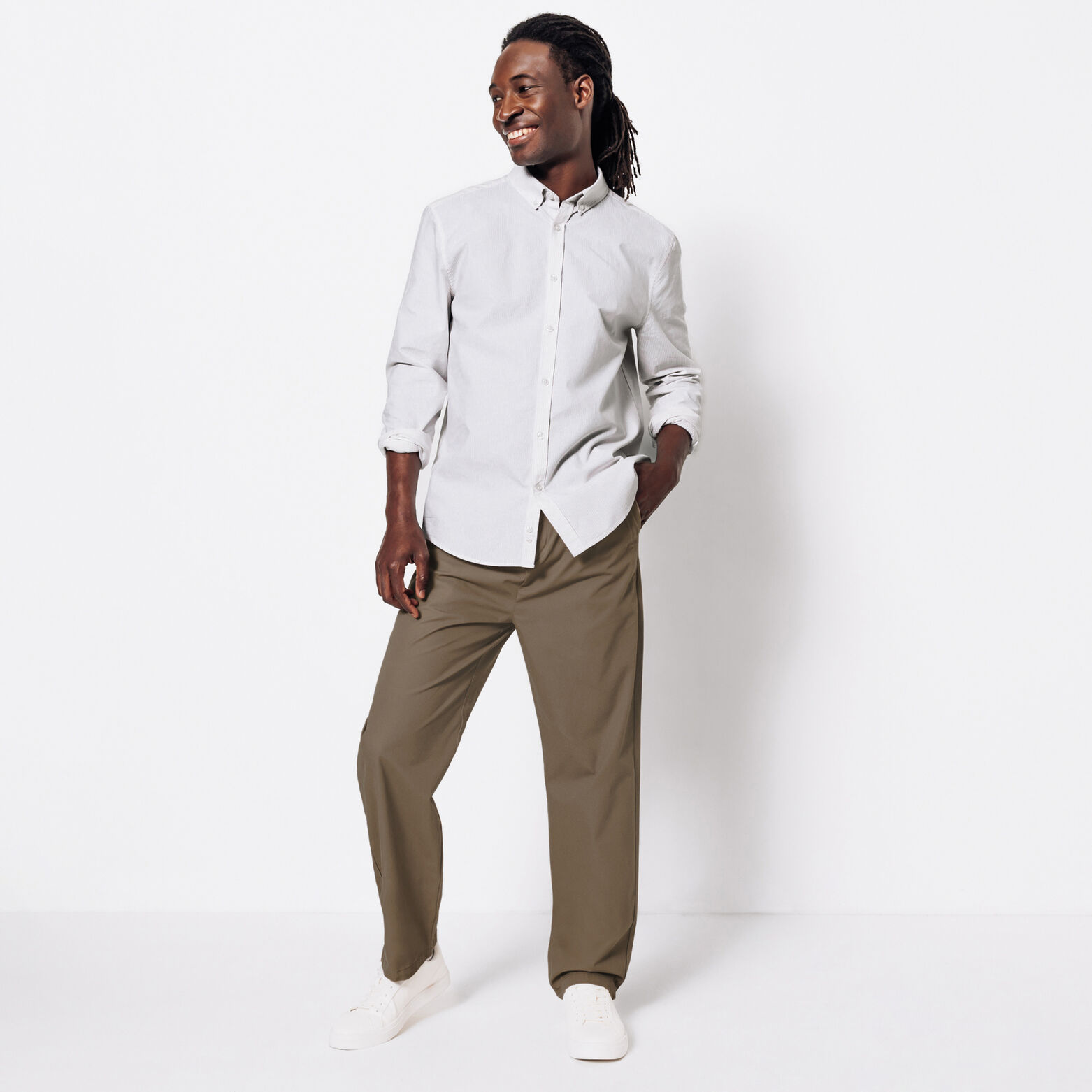 Ce pantalon se mariera parfaitement avec une chemise blanche et des baskets pour un look décontracté et élégant.