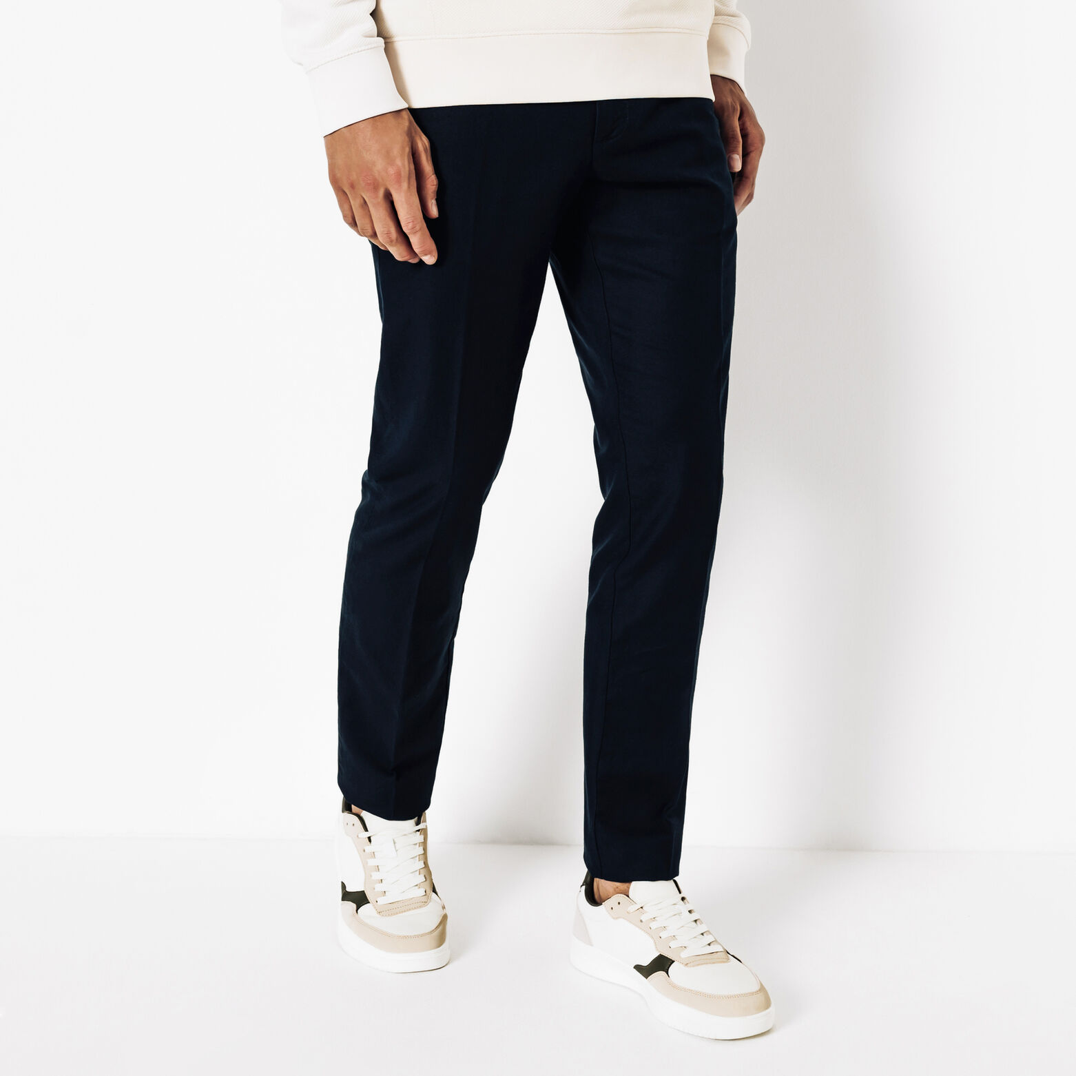 Ce pantalon chino se mariera parfaitement avec une chemise blanche et des baskets pour un look décontracté et élégant. Pour un look plus habillé, on pourra l'associer à une chemise en lin et des mocassins.