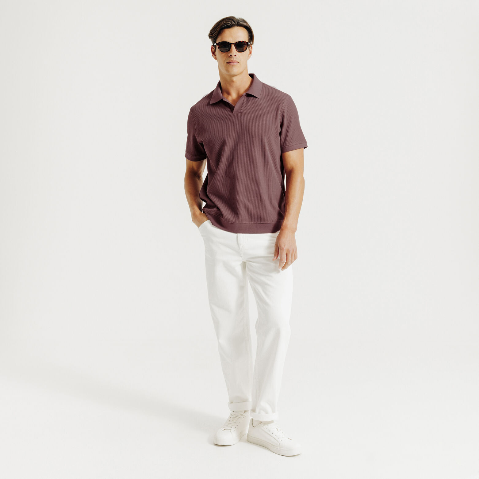 Ce polo manches courtes texturé affiche un style décontracté avec son col resort et sa texture côtelée.