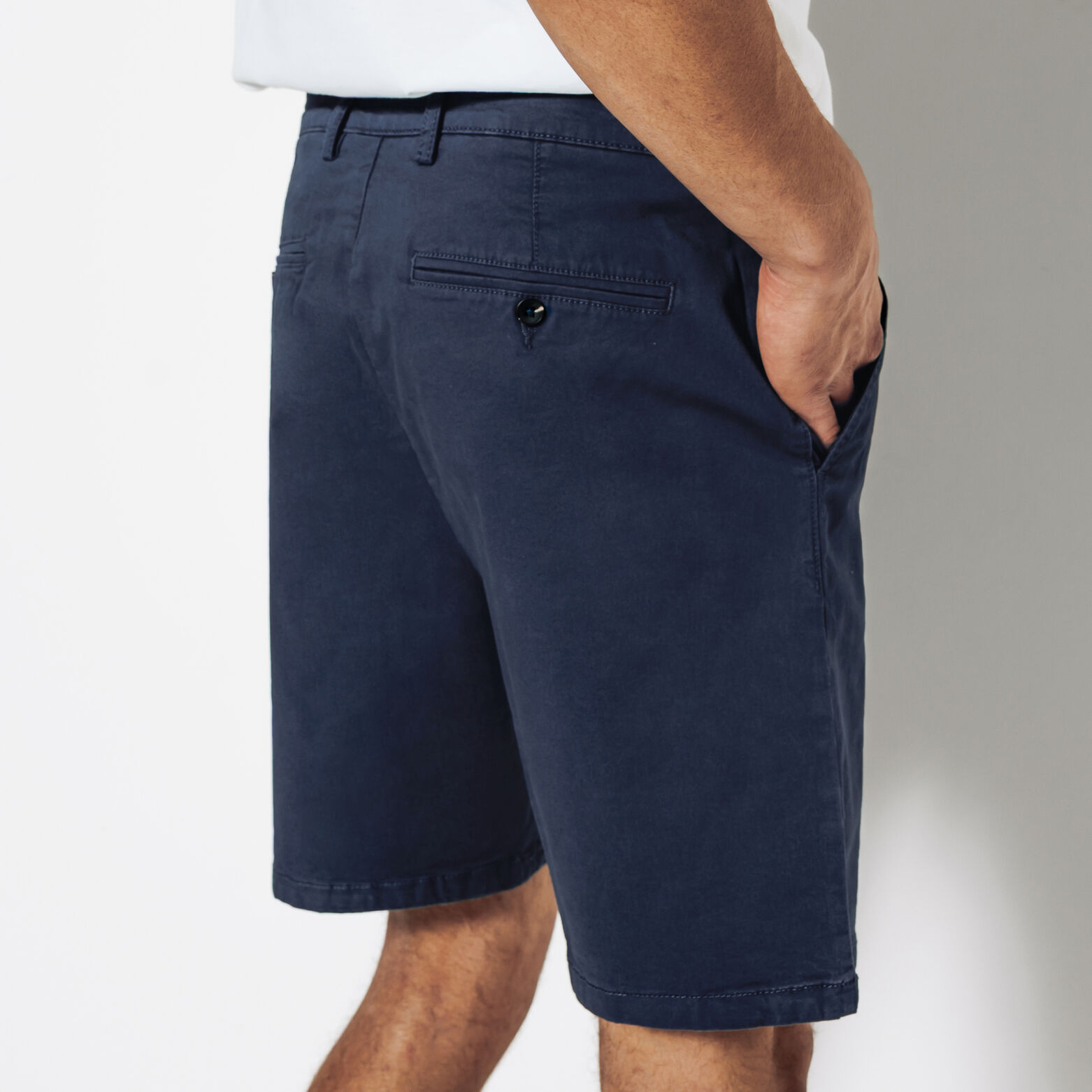 Ce short chino se marie parfaitement avec une chemise à manches courtes et des baskets blanches pour un look décontracté et élégant.