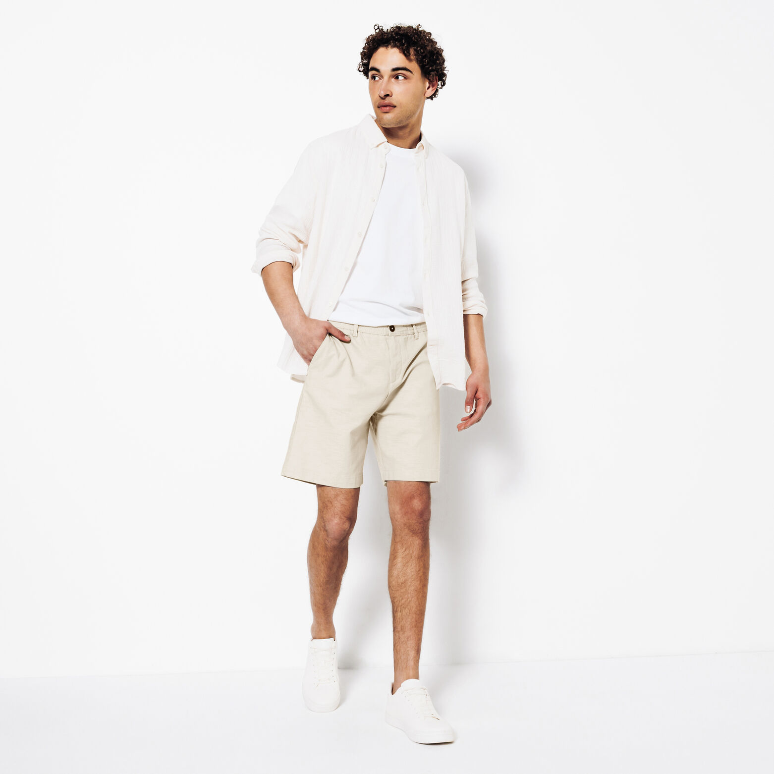 Ce short se marie parfaitement avec une chemise à manches courtes ou à manches longues pour un look décontracté et stylé. Pour un look estival, associez-le à un t-shirt blanc et des baskets.