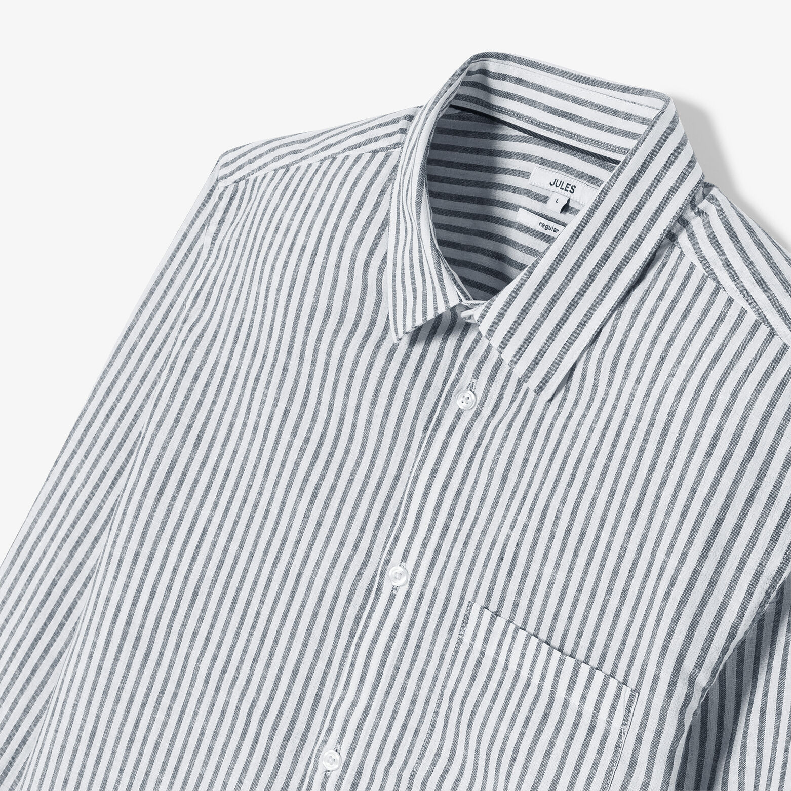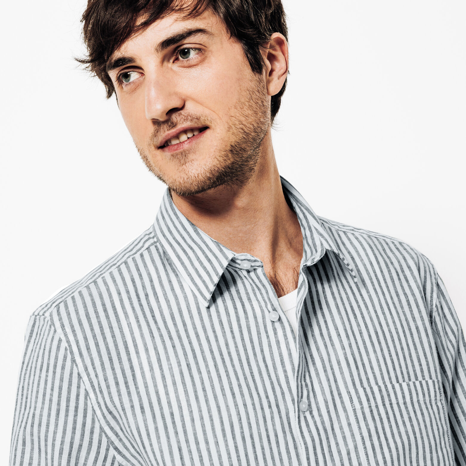 Cette chemise en coton lin rayée, à la fois élégante et décontractée, est idéale pour un look tendance sans effort. C'est un essentiel à avoir dans son dressing !
