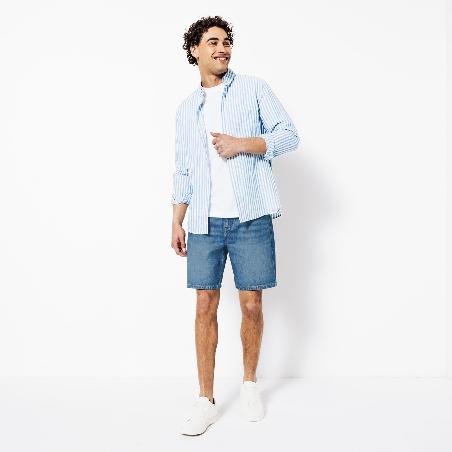 Ce short en jean s'associera parfaitement avec un t-shirt basique blanc et une paire de baskets pour un look décontracté. Pour un look plus habillé, vous pouvez le porter avec une chemise et des mocassins.