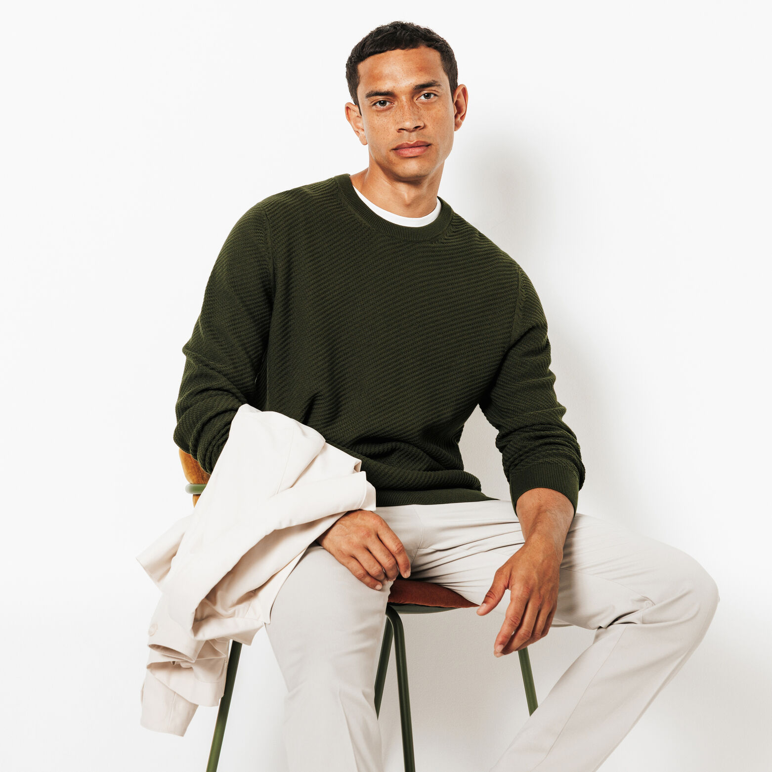 Pour un look décontracté, portez ce pull avec un jean brut et des baskets. Pour une tenue plus habillée, associez-le à un pantalon chino et des chaussures de ville. Vous pouvez également le porter sous une veste ou un manteau pour plus de chaleur et de style.