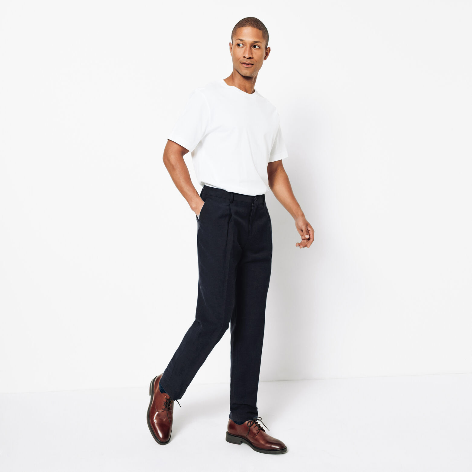 Le pantalon de costume convient aussi bien dans une tenue élégante qu’un look casual. Il saura faire son effet, pour une tenue jeune et branchée, mais pas moins sophistiquée.