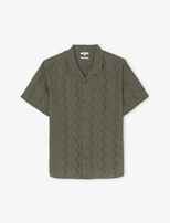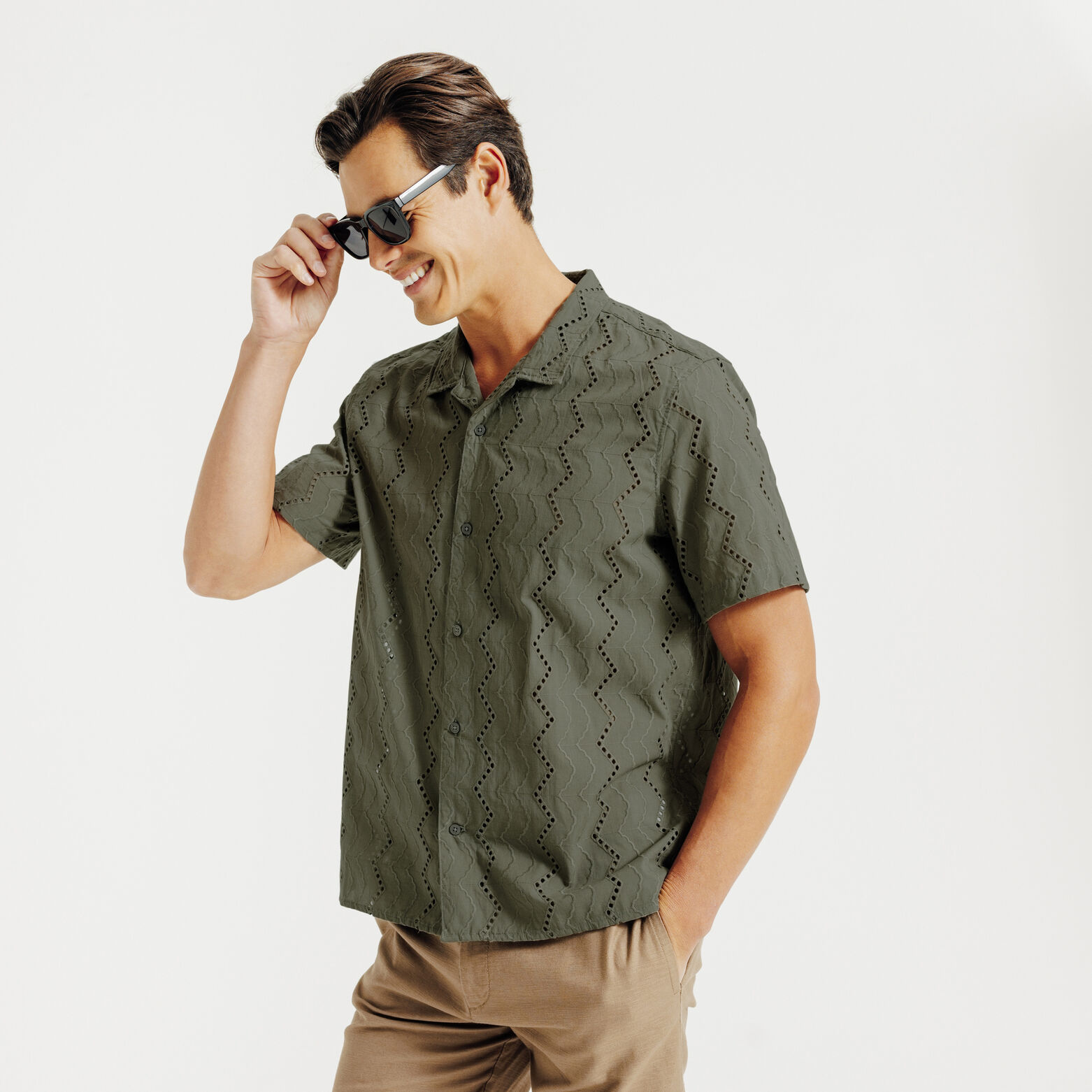 Optez pour un style tendance et décontracté avec cette chemisette en coton brodée. Elle se distingue par son motif ajouré en forme de vagues verticales, sa coupe regular et son col requin.
