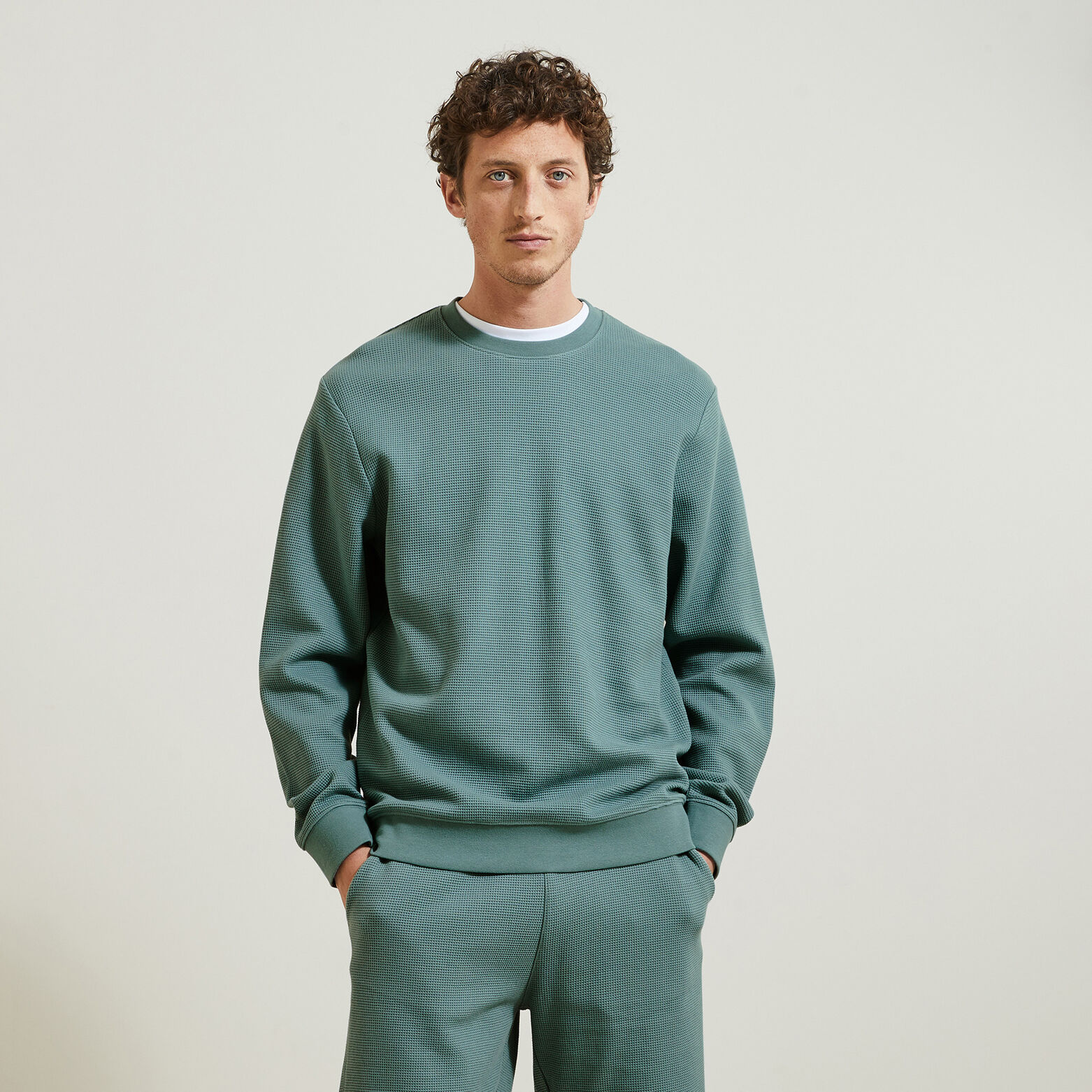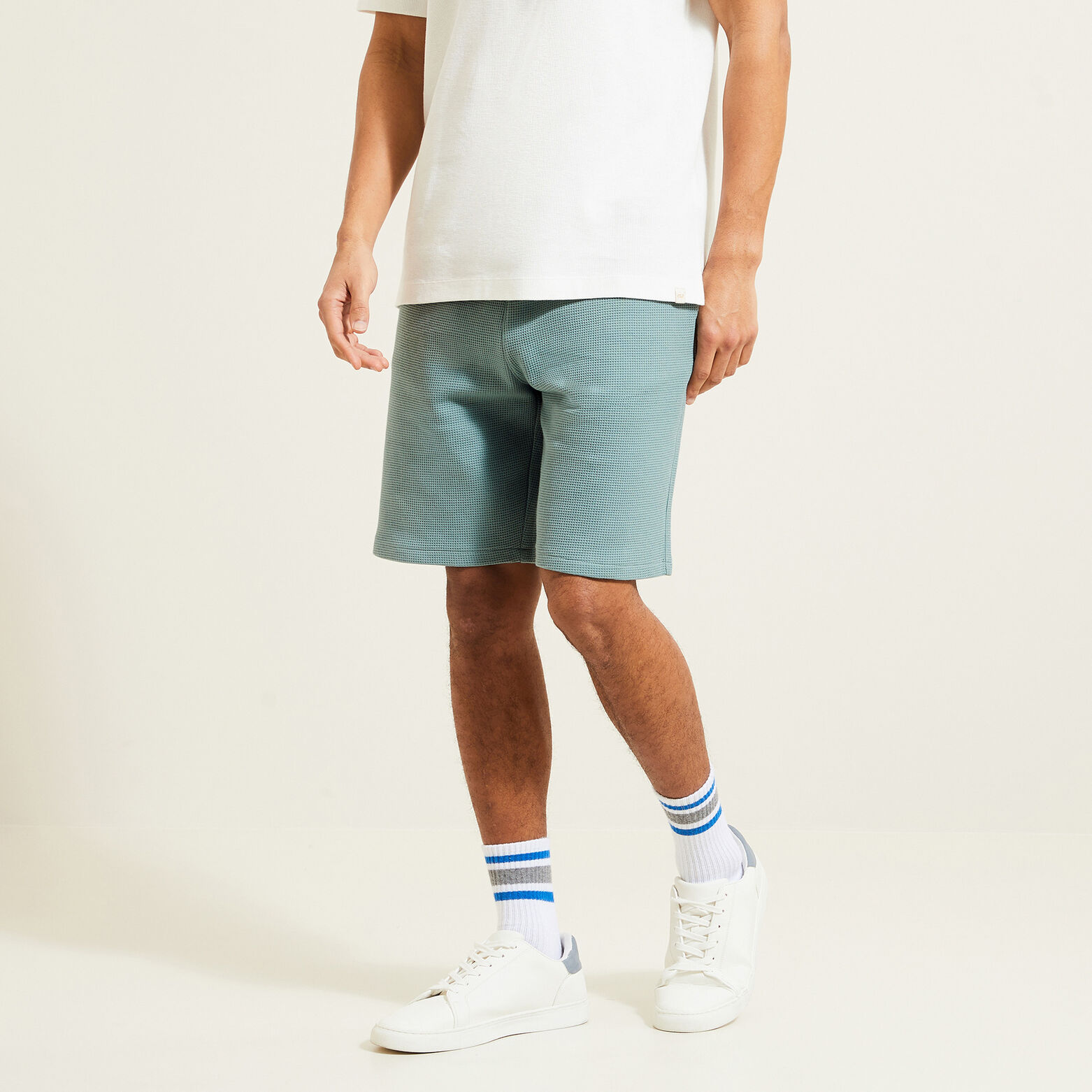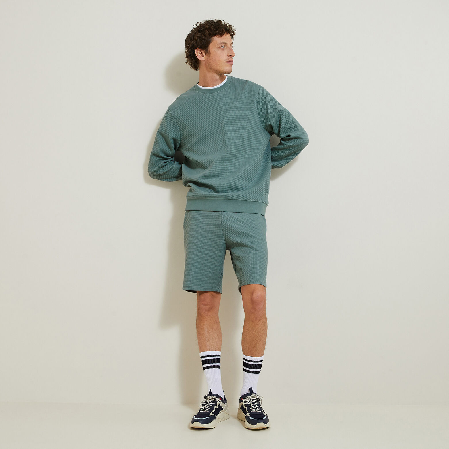 Ce bermuda en molleton uni apporte douceur et confort au quotidien. Son tissu gaufré en fait une pièce à mixer à toutes vos tenues.