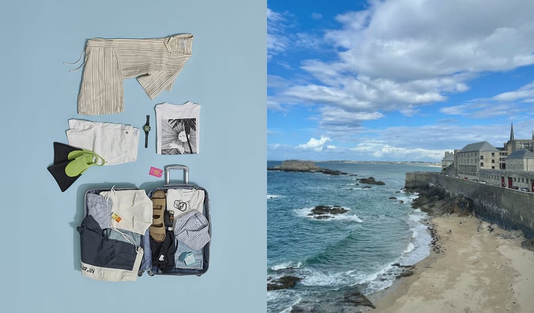Une valise qui sent bon les embruns, les balades sur les remparts et les couchers de soleil sur la plage. Des tenues pensées pour le grand air, les escapades en bateau ou les pauses galette-saucisse (ça compte aussi).