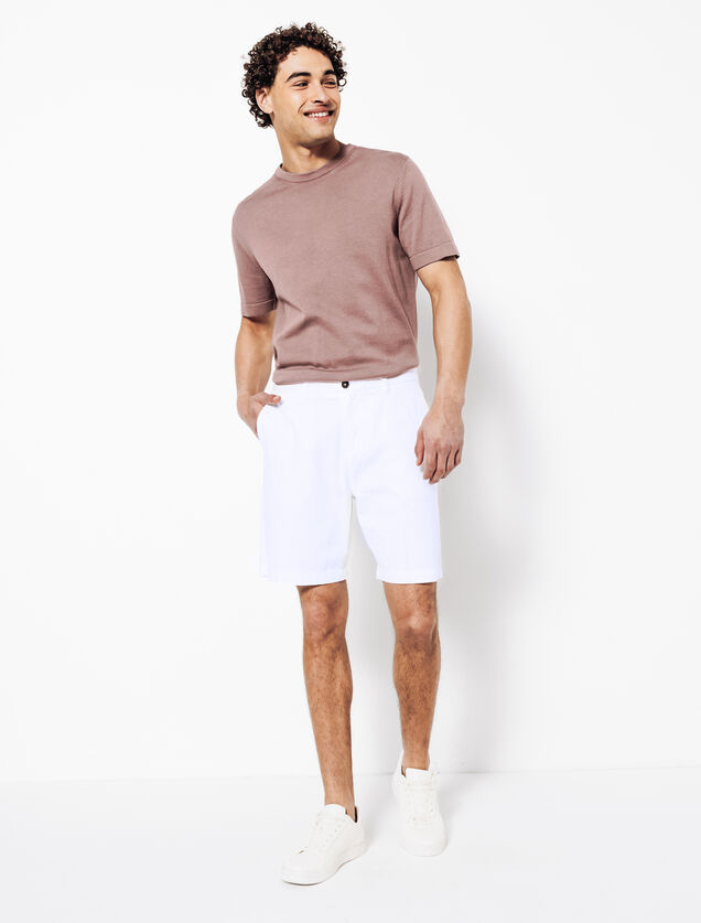 Het is gemakkelijk te combineren en te dragen met het grootste deel van je garderobe. De korte broek of een bermuda voor heren passen zich aan alle stijlen aan. Blauw, groen of knalrood voor een vleugje speelsheid ... de kleuren zijn er, het mag toch zomers zijn? Bermuda's voor heren passen net zo goed bij een overhemd, een T-shirt, een poloshirt of zelfs een kleine trui voor de frissere dagen. Gaat het over schoenen, geef dan de voorkeur aan sneakers die je outfit een trendy look zullen geven.
