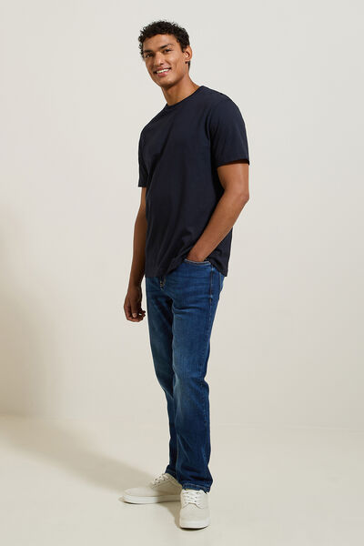 De regular jeans voor heren staat voor basic, het onmisbare en het tijdloze. Het past bij alle lichaamstypen en voegt zich naar alle stijlen. Door goed geproportioneerde benen te benadrukken, zorgt het voor een mooie pasvorm die doorgetrokken wordt tot aan de schoenen. Een absolute klassieker die elke man zal weten te waarderen en zal herkennen. De regular jeans is met sneakers of desert boots helemaal trendy. Samen met een overhemd, derbies en een leren riem met opvallende gesp, is het de ideale formele outfit, met een vleugje casual en nonchalance.