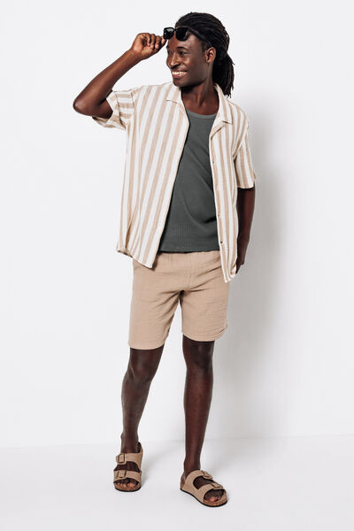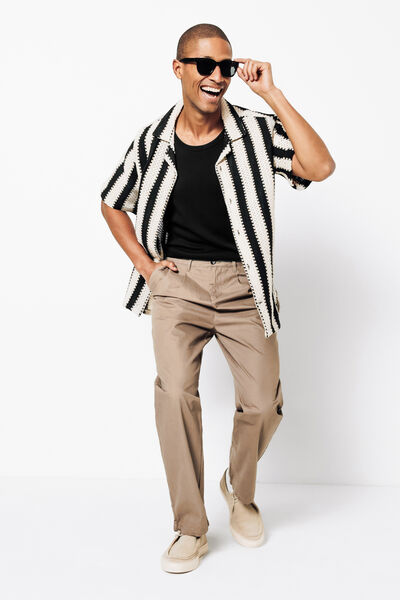 Verwissel je spijkerbroek voor een chinobermuda en verruil je sneakers voor bootschoenen voor een iets meer nonchalante stijl. Deze outfit is ideaal voor bijvoorbeeld een romantisch avondje aan zee samen met je vakantieliefde, flanerend over de boulevard met het uitzicht op de ondergaande zon.