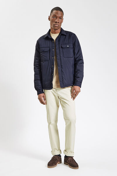 Voor een meer chique stijl, laat je overshirt gesloten en combineer je het met een chino of bermuda. Je overshirt is ideaal voor koele zomeravonden. Ze vervangt graag de linnen overhemden of zelfs spijkeroverhemden, die opvallen in klassieke kostuumoverhemden , en geeft een trendy touch aan de outfit.