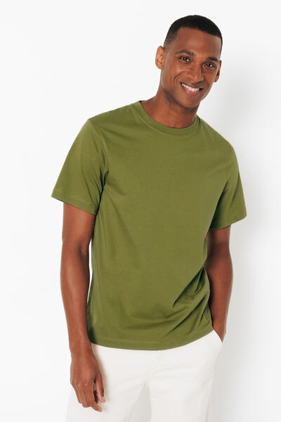 Eenvoudig en trendy, zelfs in de winter en in het tussenseizoen, het heren-T-shirt met korte mouwen is perfect! Een onmisbaar en basic herenkledingstuk voor alle gelegenheden; het jersey T-shirt is een kledingstuk dat je nodig hebt. Als je iets eenvoudigs wilt dragen, maar wat toch een belangrijk onderdeel is van je outfit. Als de dagen koud zijn, kies je voor een heren t-shirt met lange mouwen of draag je een trui met ronde hals of een vest met rits over je T-shirt met korte mouwen. Daarentegen, voor hete zomerdagen of om naar het strand te gaan, kies je voor een stretch tanktop.