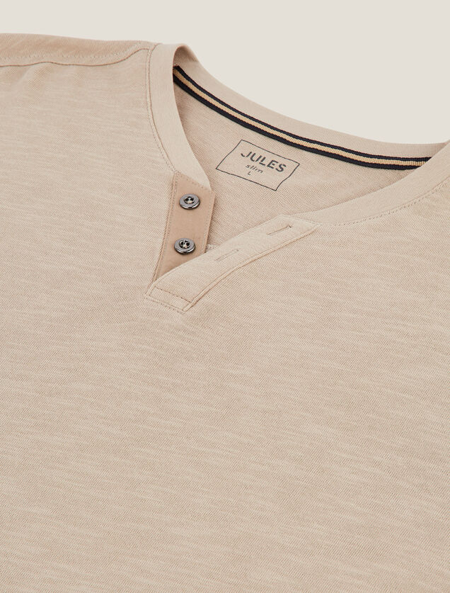 Wat betreft de hals, er zijn er verschillende. T-shirts met een V-hals zijn bijzonder geschikt om de romp te accentueren, ze springen in het oog. Ronde kragen zijn daarentegen geschikter voor vierkante en brede schouders. Als je wat mager bent, vermijd dan het T-shirt met Tunesische kraag.