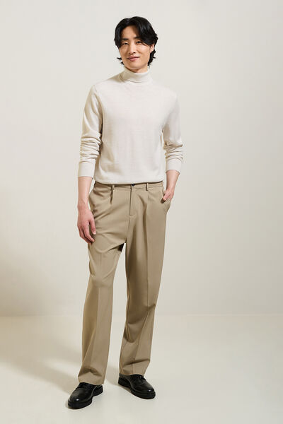 De herentrui met V-hals verfijnt het silhouet. Je kunt hem over een overhemd dragen, waarbij je ervoor zorgt dat de kraag goed in de trui blijft, of een T-shirt om meer karakter aan je outfit te geven. De set kan worden gedragen onder een leren jas of alleen met een colbert jasje voor een meer formele outfit.