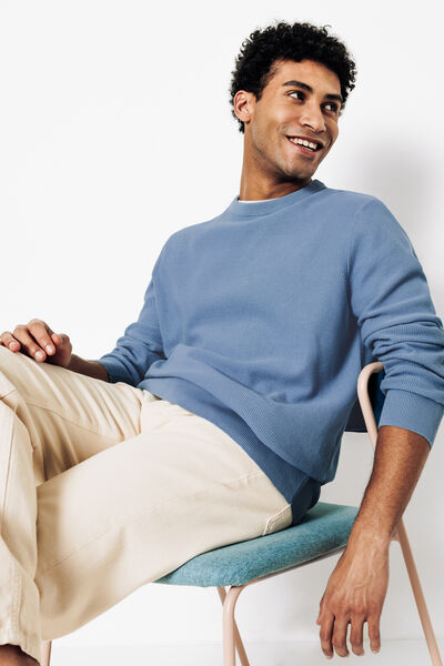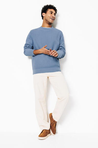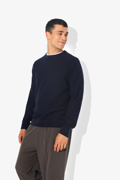 De trui met ronde hals kan overal bij gedragen worden. Combineer het met een shirt voor een klassieke outfit of met een herenjack voor een meer casual look.