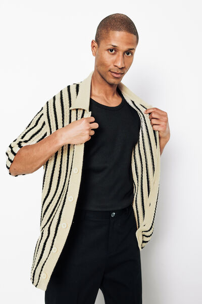 Zowel op een overhemd als op een T-shirt, een trui past zich aan alle stijlen aan. Je kunt het klassiek met eenvoudige kleuren dragen door je trui te combineren met een elegant Oxford-overhemd. Tenzij je de voorkeur geeft aan een meer leuke en ontspannen look met een opvallend dessin. Bijvoorbeeld jacquard op een effen t-shirt. Maak je outfit compleet met een blauwe, zwarte of grijze chino en witte sneakers om tegelijkertijd voor een urban, chic of streetwise touch te zorgen.