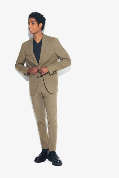 De keuze van je jasje hangt af van je lichaamstype. Het is essentieel om een jas te kiezen die je figuur mooier maakt. Onze verschillende beschikbare modellen passen zich aan alle body’s aan. Stretch, slim, regular fit… in ons assortiment vinden alle mannen een colbert op maat. De aangeboden herenjasjes passen zich aan alle seizoenen aan. Van dikkere tot fijnere materialen, er is voor elk wat wils. Te combineren met een jas als de koude zijn intrede doet of om alleen te dragen bij mooi weer, de keuze is aan jou. De meesten zullen de voorkeur geven aan herencolberts en blazers die nauwsluitend zijn, terwijl anderen de voorkeur zullen geven aan een rechte snit met meer bewegingsruimte. Een slanke pasvorm accentueert je schouders en geeft je een mannelijker postuur. Aan de lengtekant adviseren wij over het algemeen om het colbert op de onderkant van de billen te laten vallen. Als je vrij lang bent, kun je ook een model kiezen dat doorloopt tot aan de bovenkant van de bovenbenen om je figuur in balans te brengen en meer aandacht te geven aan je bovenlichaam. Omgekeerd verlengt een getailleerde heren colbert je benen en zie je er langer uit.
