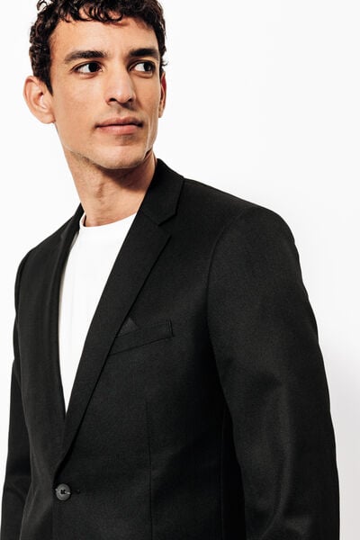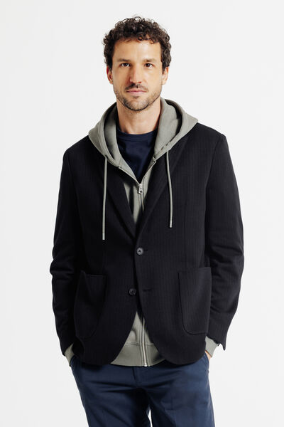Het colbert voor mannen is een echte essential waarmee je veel outfits kunt samenstellen ; soms heel chic en elegant, soms meer casual. Je kunt je jasje ook dragen in een pak met een geplooide broek en een herenoverhemd of met raw jeans of chino en een T-shirt voor een casual outfit. Qua kleuren is alles mogelijk! Geef de voorkeur aan klassieke kleuren: kaki, zwart, grijs, marineblauw, kleuren die goed te combineren zijn met andere kleding. Een donker herencolbert kan een prima vervanging zijn voor een pak als je er geen hebt. Combineer met een regular fit broek of jeans. Je kunt ook kiezen voor een bruin jack. De modellen met piqué breisel, elleboogstukken of een dessin passen perfect bij een herentrui voor een trendy look. Als je van een sportieve stijl houdt, draag dan een gebreid jasje dat je kunt dragen over een heren sweatshirt met capuchon en met een paar sneakers. In de winter kun je je outfit compleet maken met een kleurrijkere herencolbert, bijvoorbeeld beige of bruin, of in een stijl die contrasteert met je overjas. De jassen van waterafstotend materiaal of met een gewatteerde voering beschermen je effectief tegen de kou en stijlvol. Blijf trendy met een model met een gevoerde capuchon. Het enige wat je hoeft te doen is een windjack of een dun tussenseizoenjack te vinden en je hebt voor elke gelegenheid een herenjack! Bomberjacks of leren jassen met een opstaande kraag staan altijd goed bij een colbert.