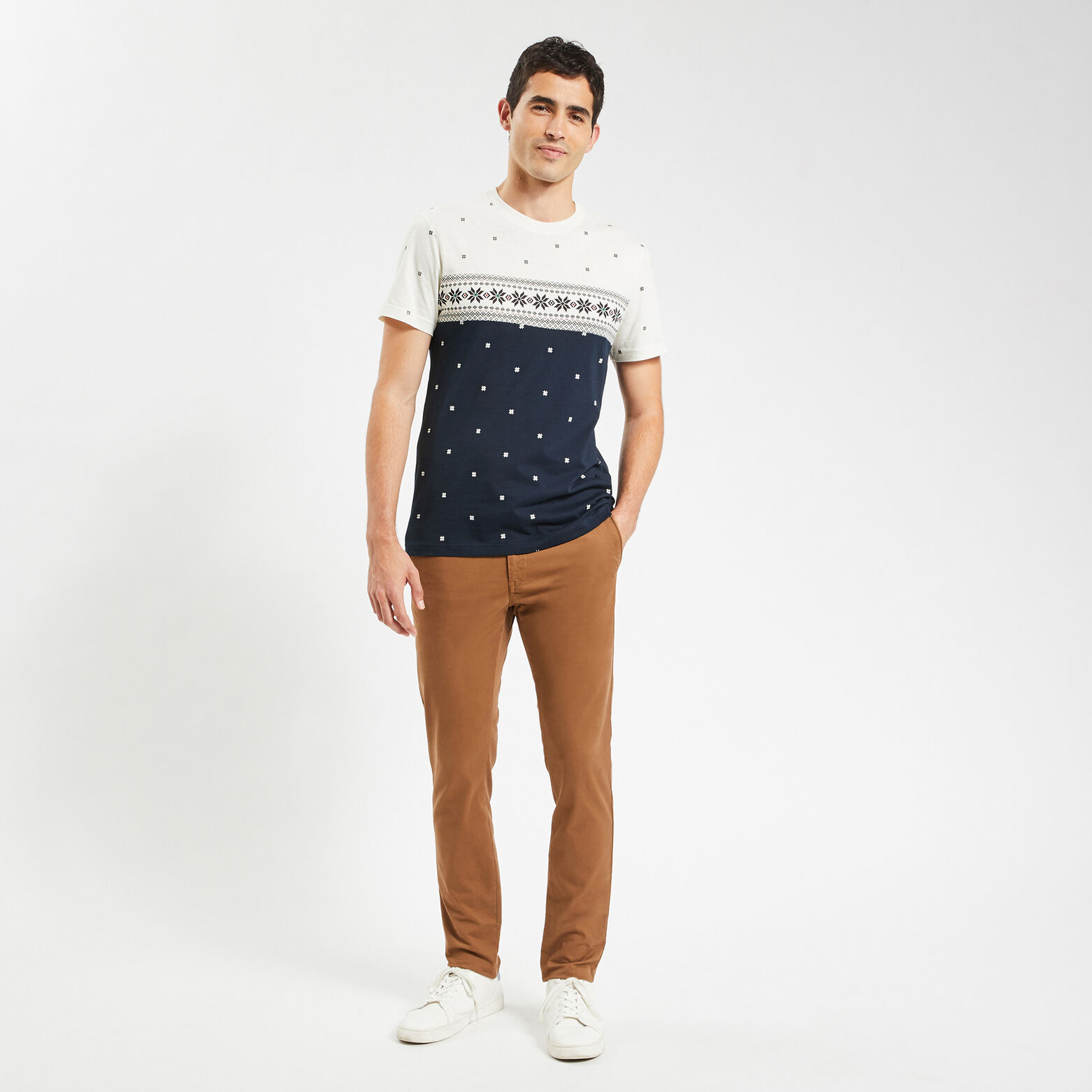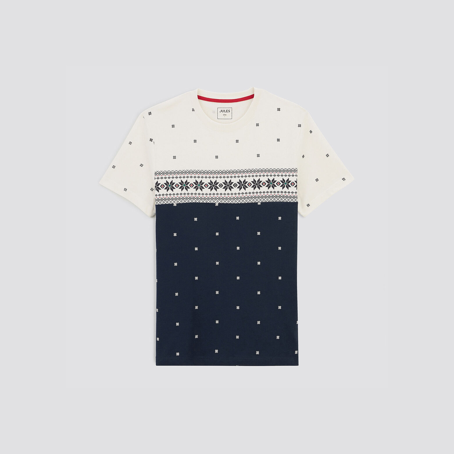 Dit colorblock fantasie T-shirt met korte mouwen heeft een ronde hals in ribboord, verschillende all-over prints, en is uitgevoerd in een slim snit die strak op het lichaam valt .