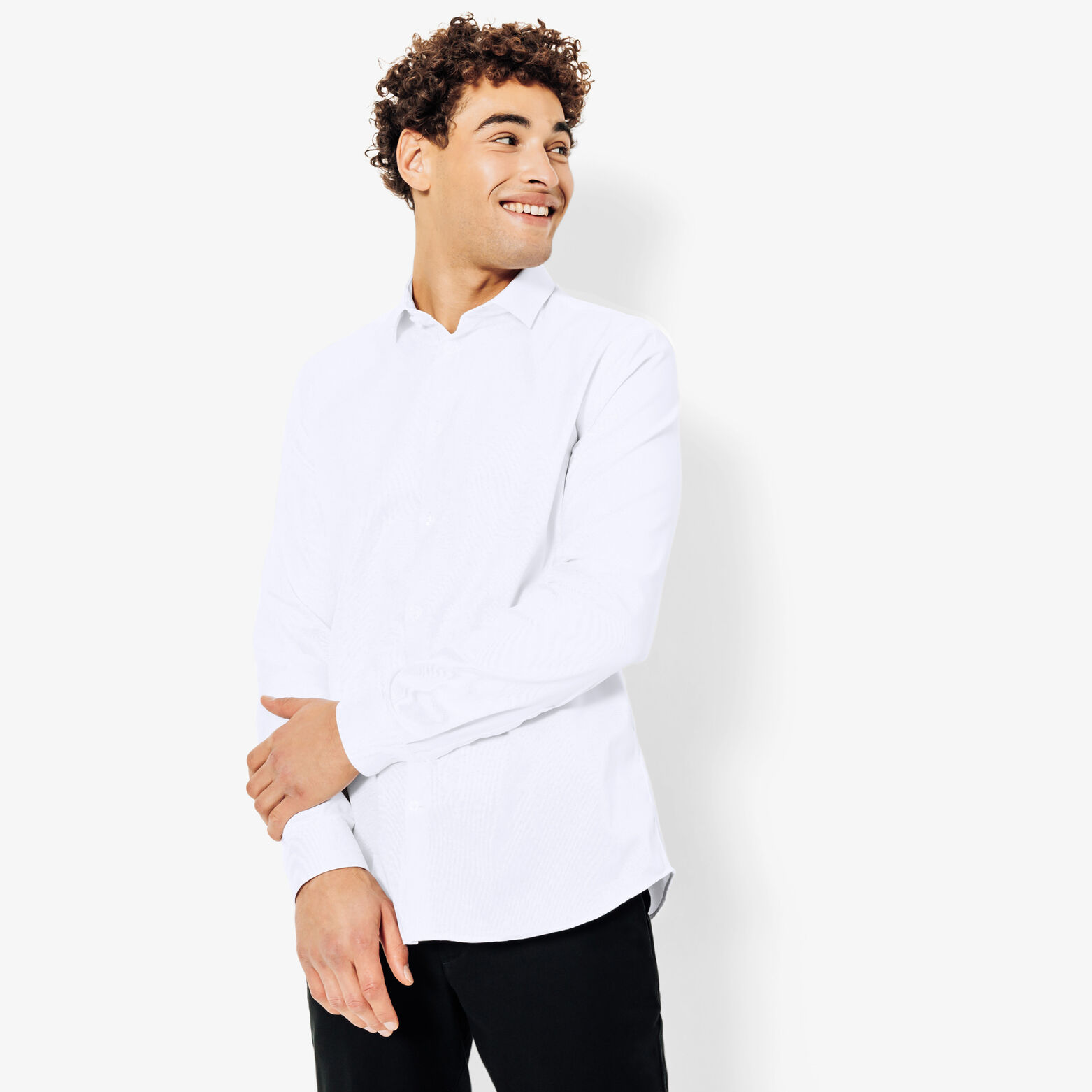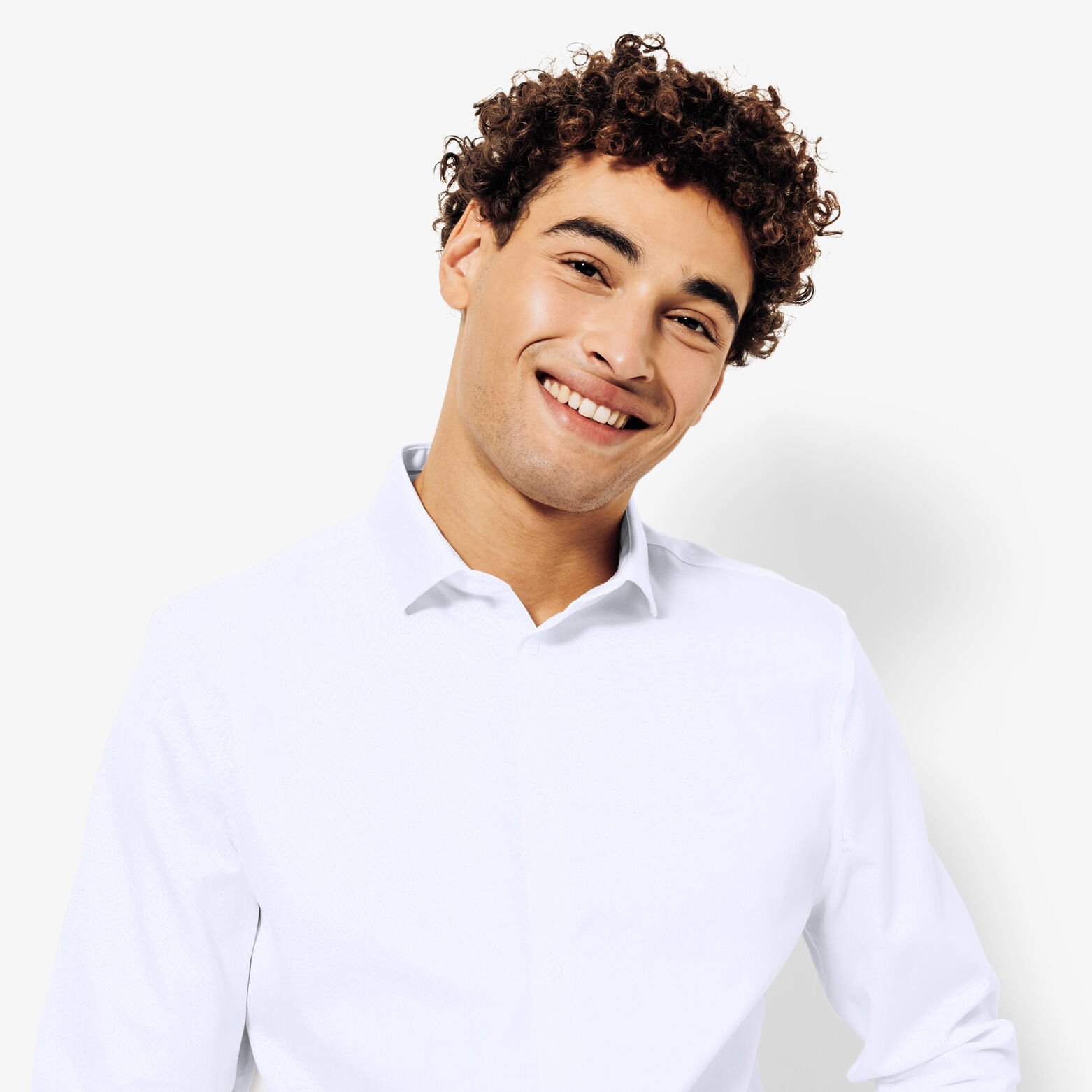 Dit strijkvrije slim hemd in katoen is het perfecte basic item om altijd in je dressing te hebben. Het matcht met alles: een jeans, een chino, een kostuumbroek en zelfs een bermuda. Voor een meer persoonlijke touch kan je manchetknopen toevoegen.