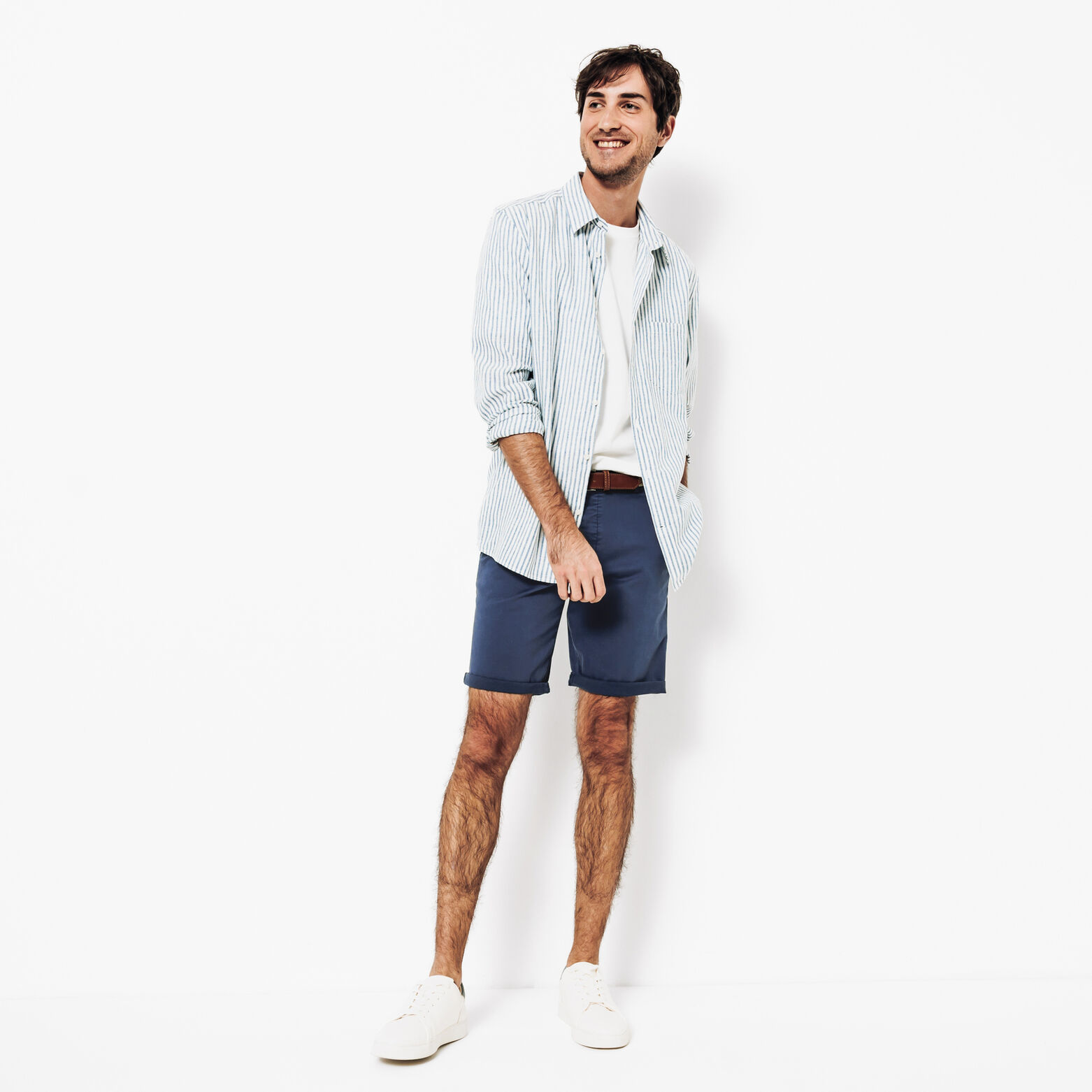 De effen chinobermuda is resoluut een must have die elke man in zijn dressing moet hebben! Om mateloos te dragen met een T-shirt, polo, hemd ... Met wat je ook maar wil.