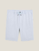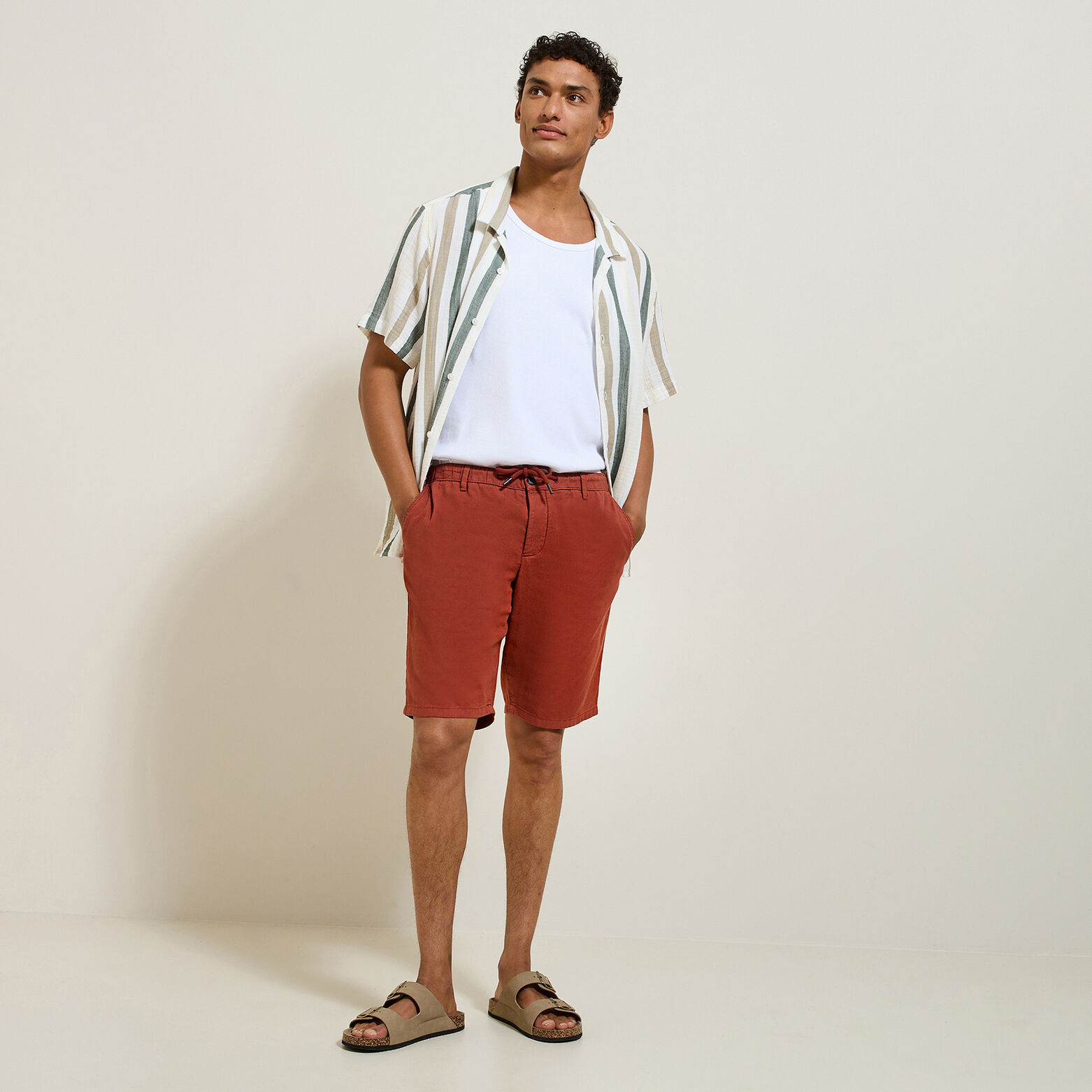 Deze bermuda in effen katoen en linnen biedt zachtheid en comfort voor elke dag. Door zijn elastische taille is de bermuda een onmisbaar kledingstuk dat je met al jouw outfits kan matchen.