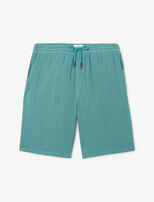 Bermuda met elastische taille in katoengaas - blauw turkoois