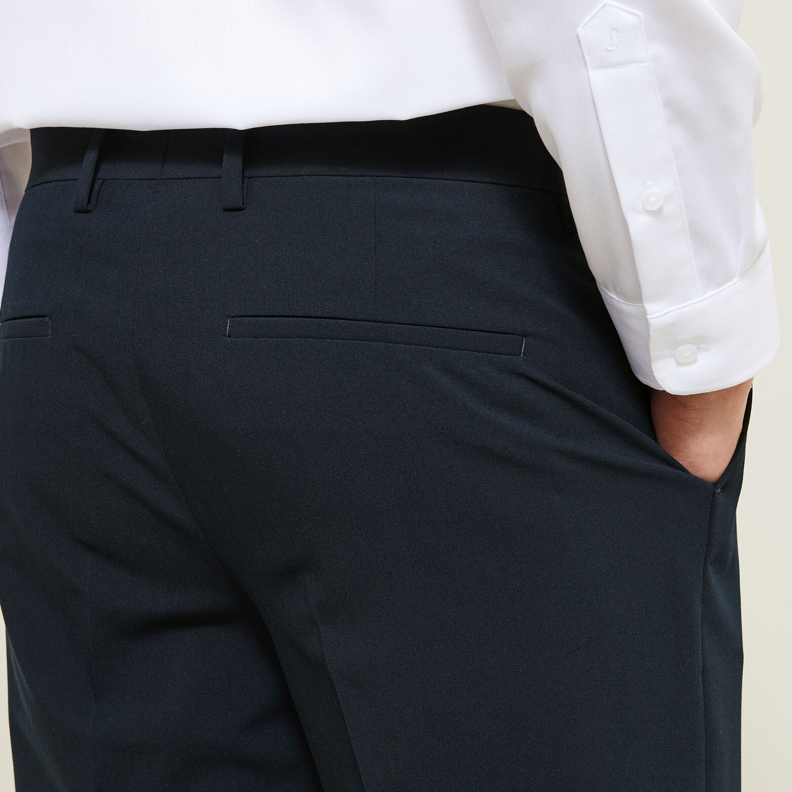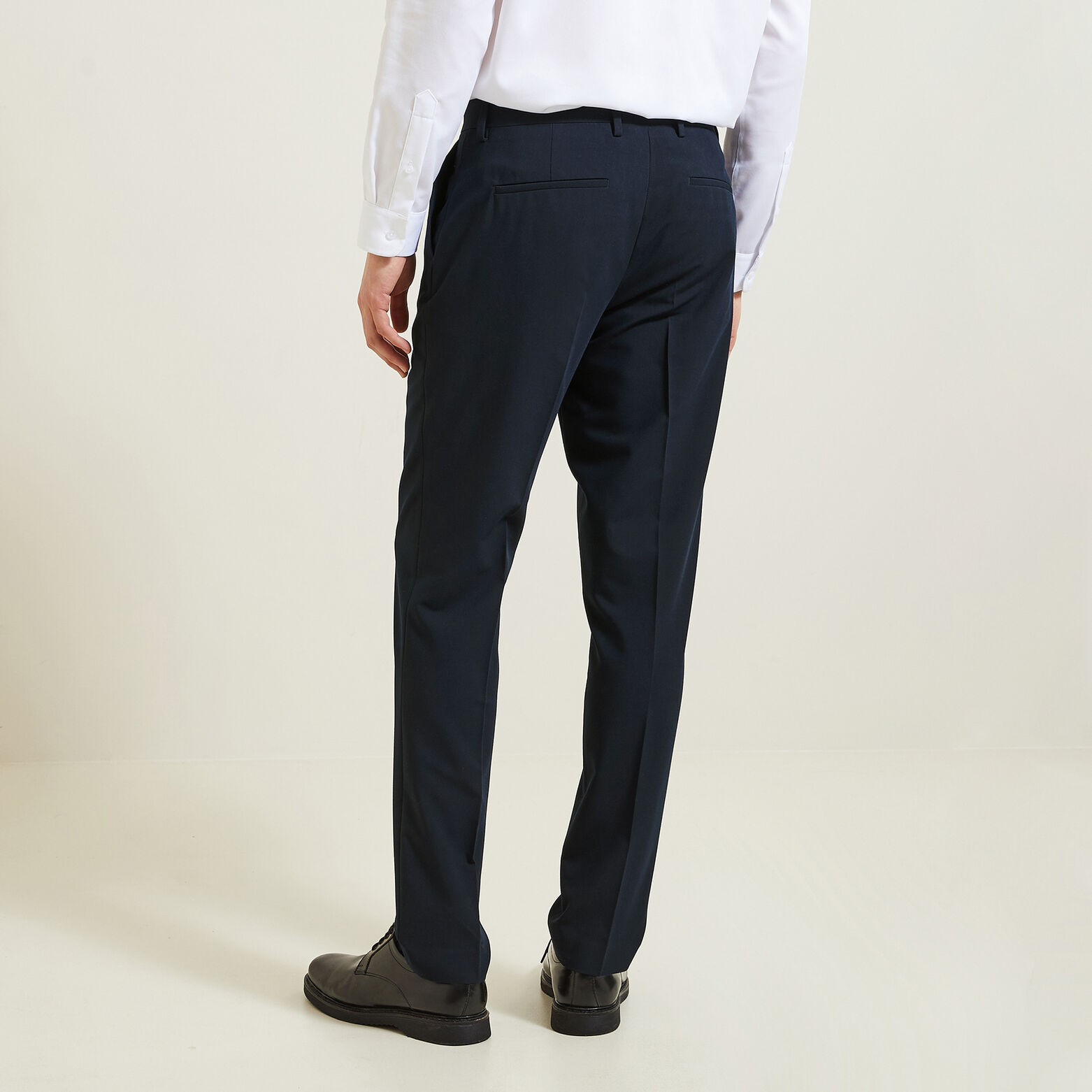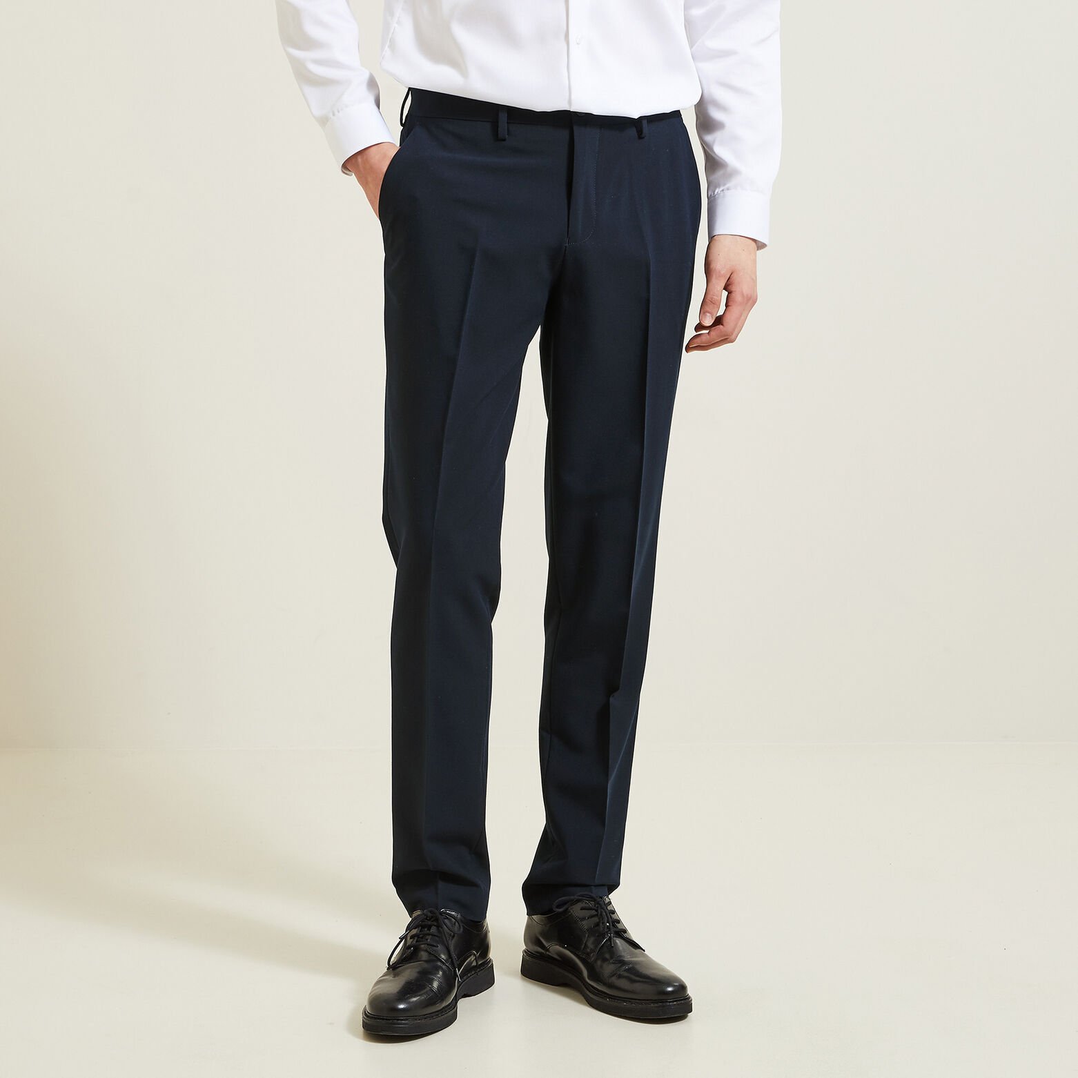 Deze kostuumbroek met goed zittende snit en rechtere pijpuiteinden dan de slim snit past perfect onder een hemd of polo.