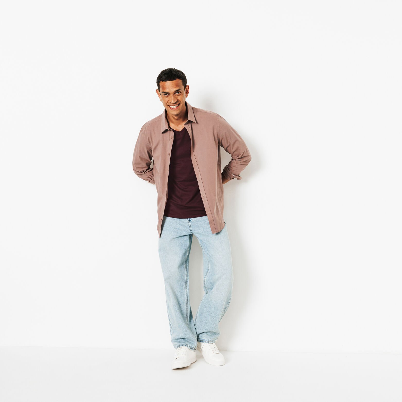 Basic T-shirt met V-hals in biokatoen - Bordeaux