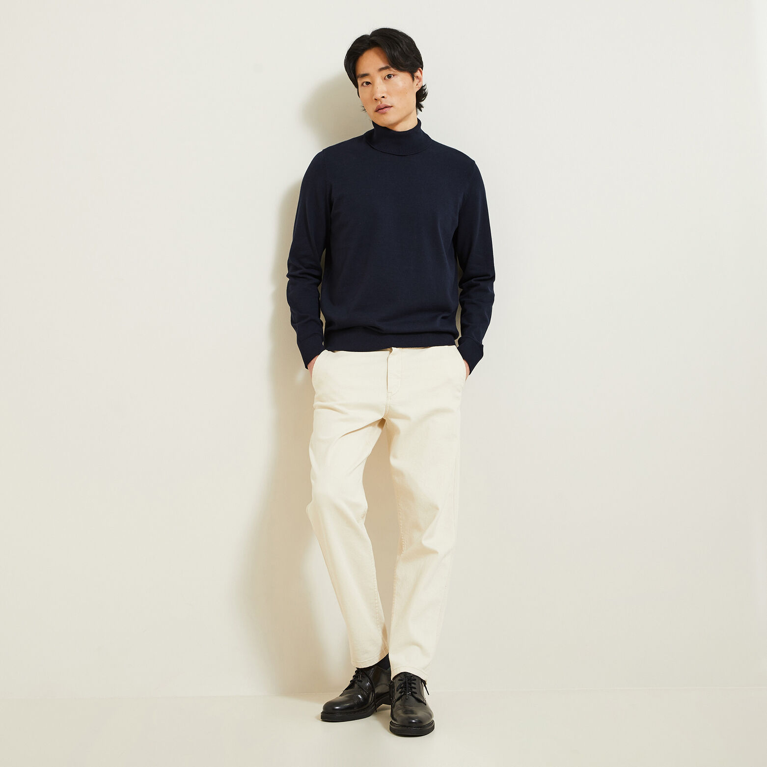 Met zijn rolkraag, een nauw aansluitende kraag die je deels naar omlaag rolt, is deze trui een absolute topper in de winter!