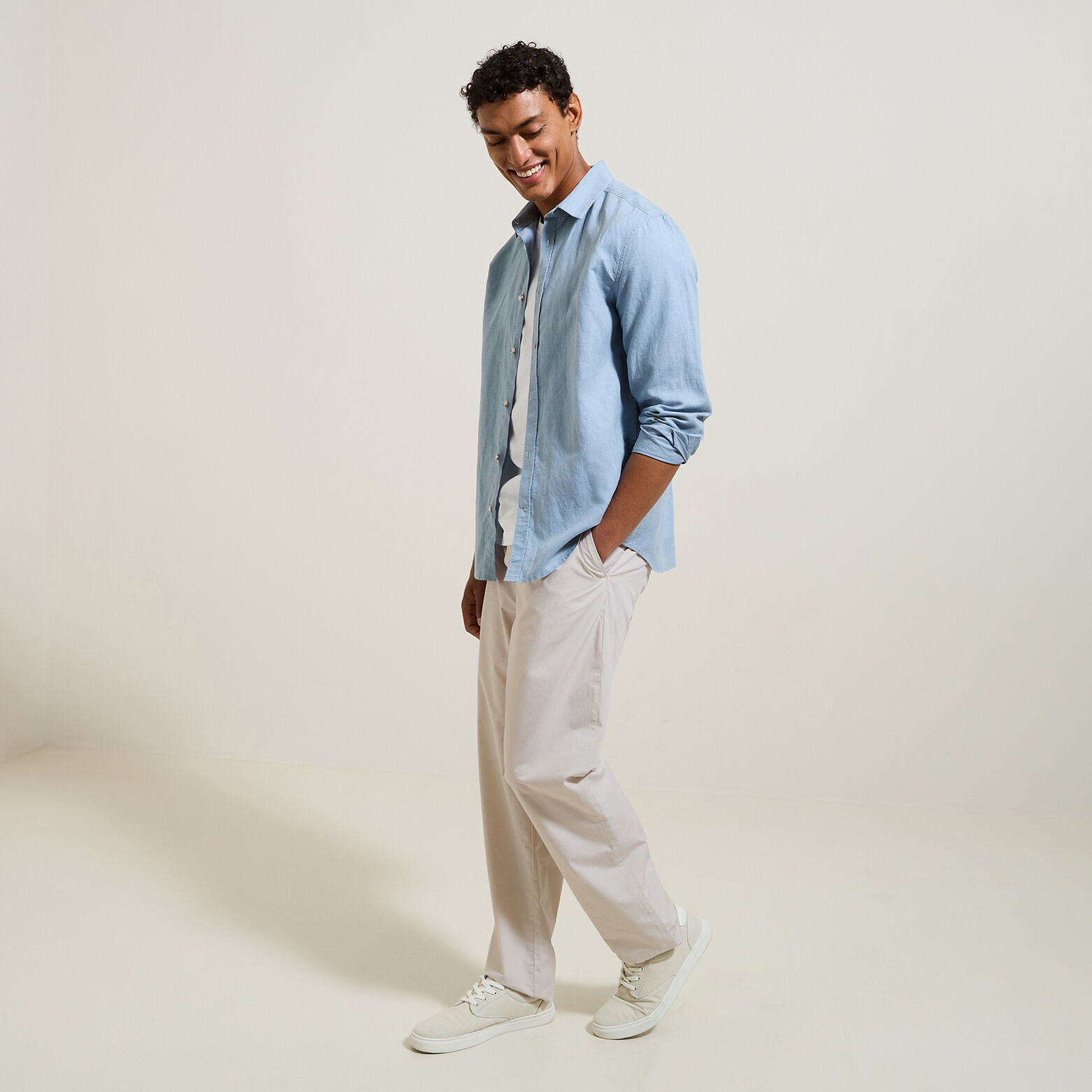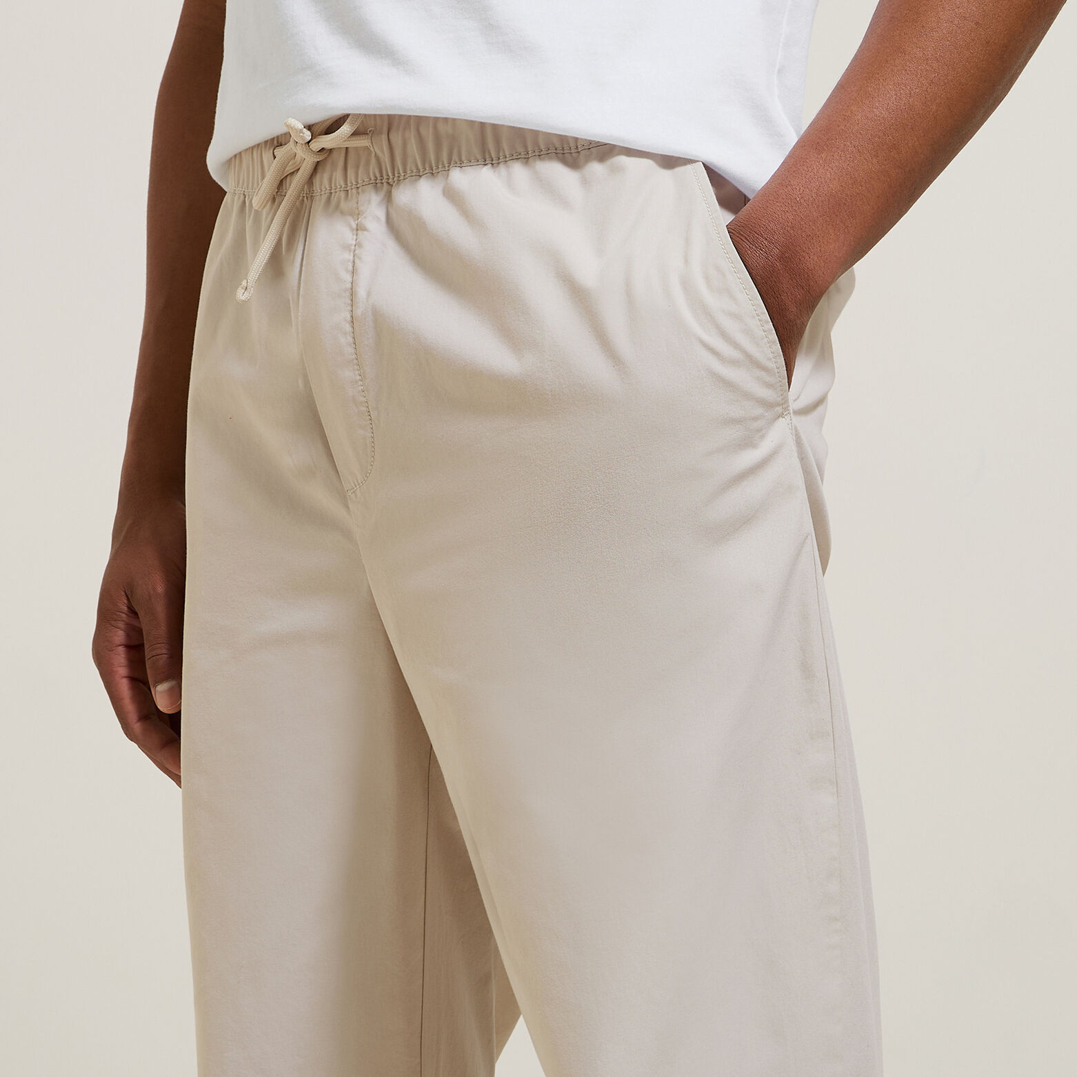 De recht gesneden chino is ook perfect als je hem liever minder dicht op het lichaam draagt.