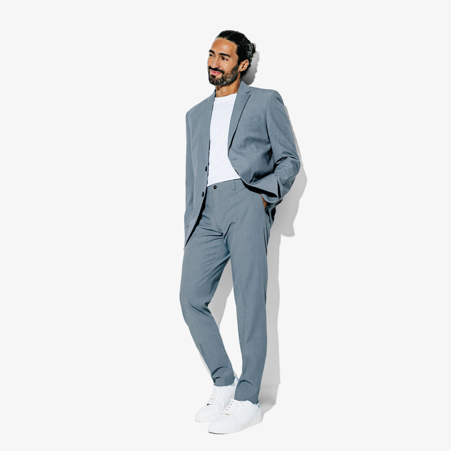 Voor een casual look, kunt u hem combineren met een wit t-shirt en sneakers. Om er iets gekleder uit te zien, kan hij gedragen worden met een bijpassend kostuumvest, en een overhemd met knopen.