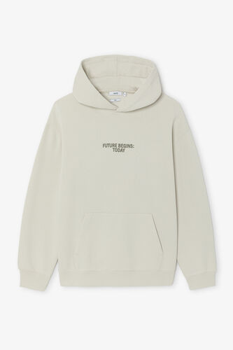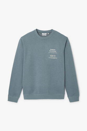 Deze sweatshirt met print past perfect op een lichte jeans, met witte sneakers voor een casual, trendy look.