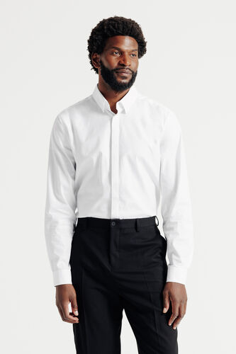 Dit slim fit strijkvrij effen hemd in katoen is eenvoudig en doeltreffend, en zal snel een vaste waarde in uw garderobe worden.