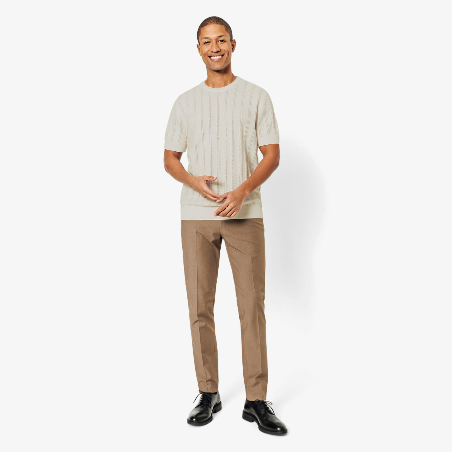 Dit t-shirt in tricot met zichtbare verticale streepsteken biedt een trendy look en een moderne stijl.