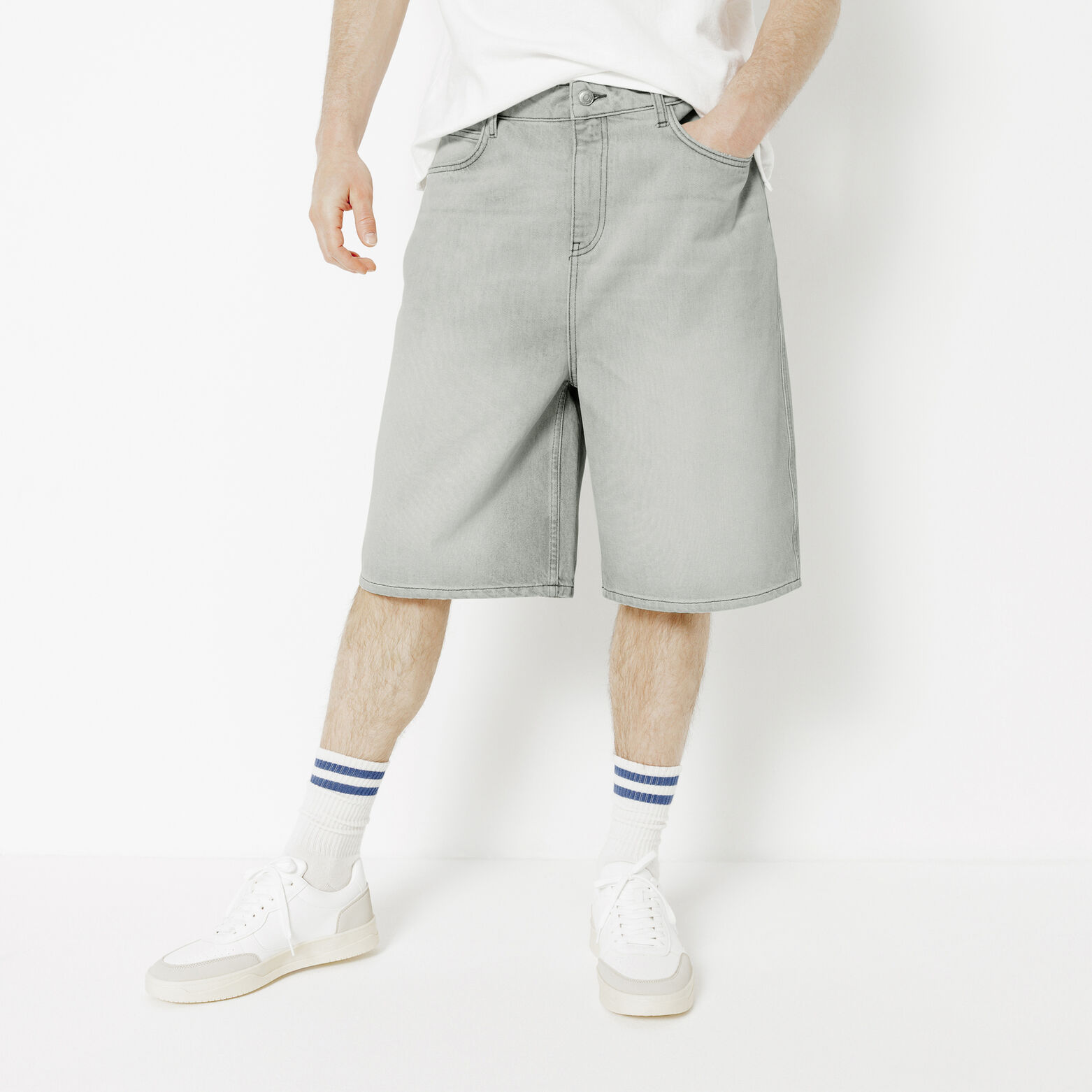 Deze lange denim short zorgt moeiteloos voor een casual look.